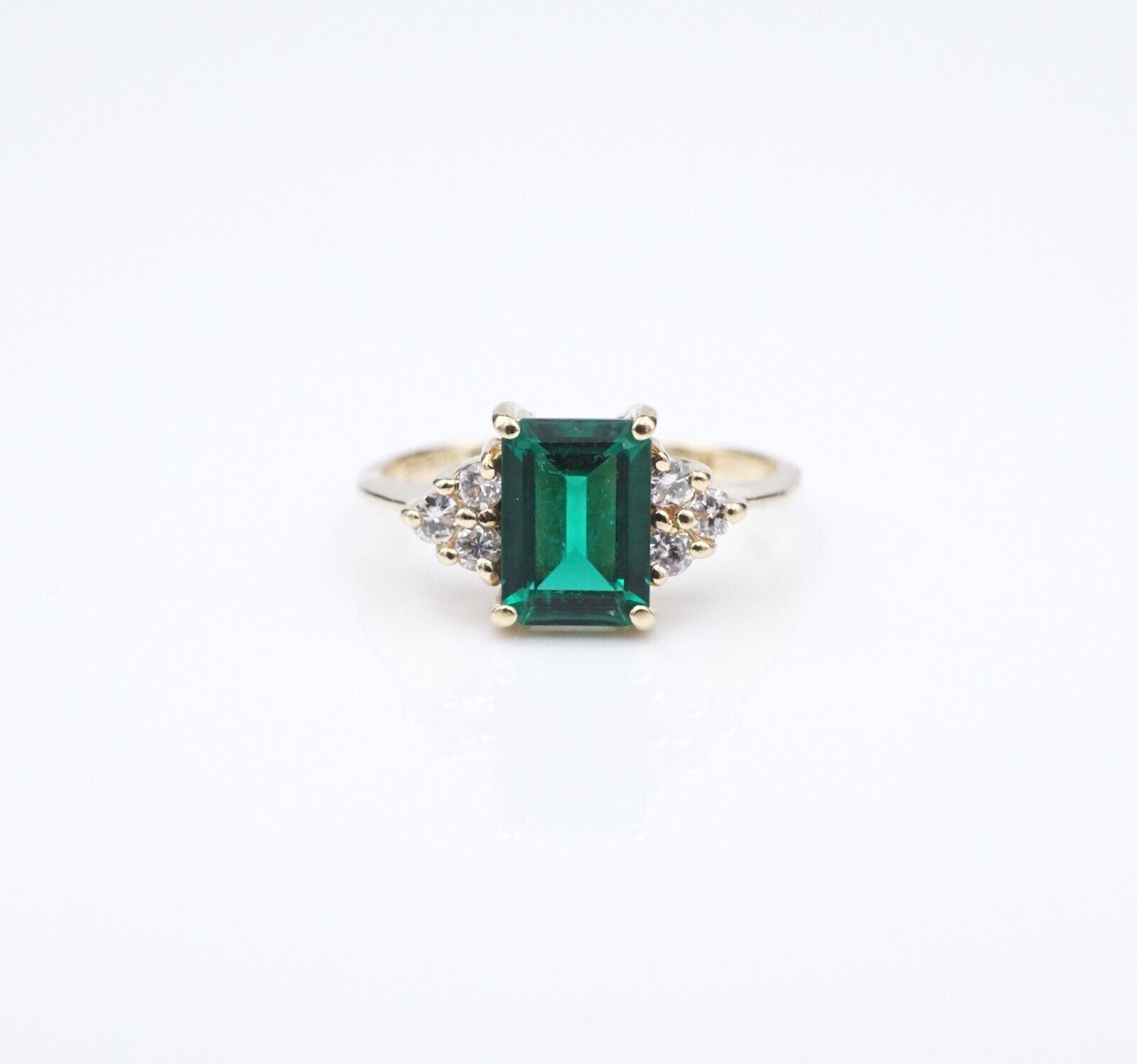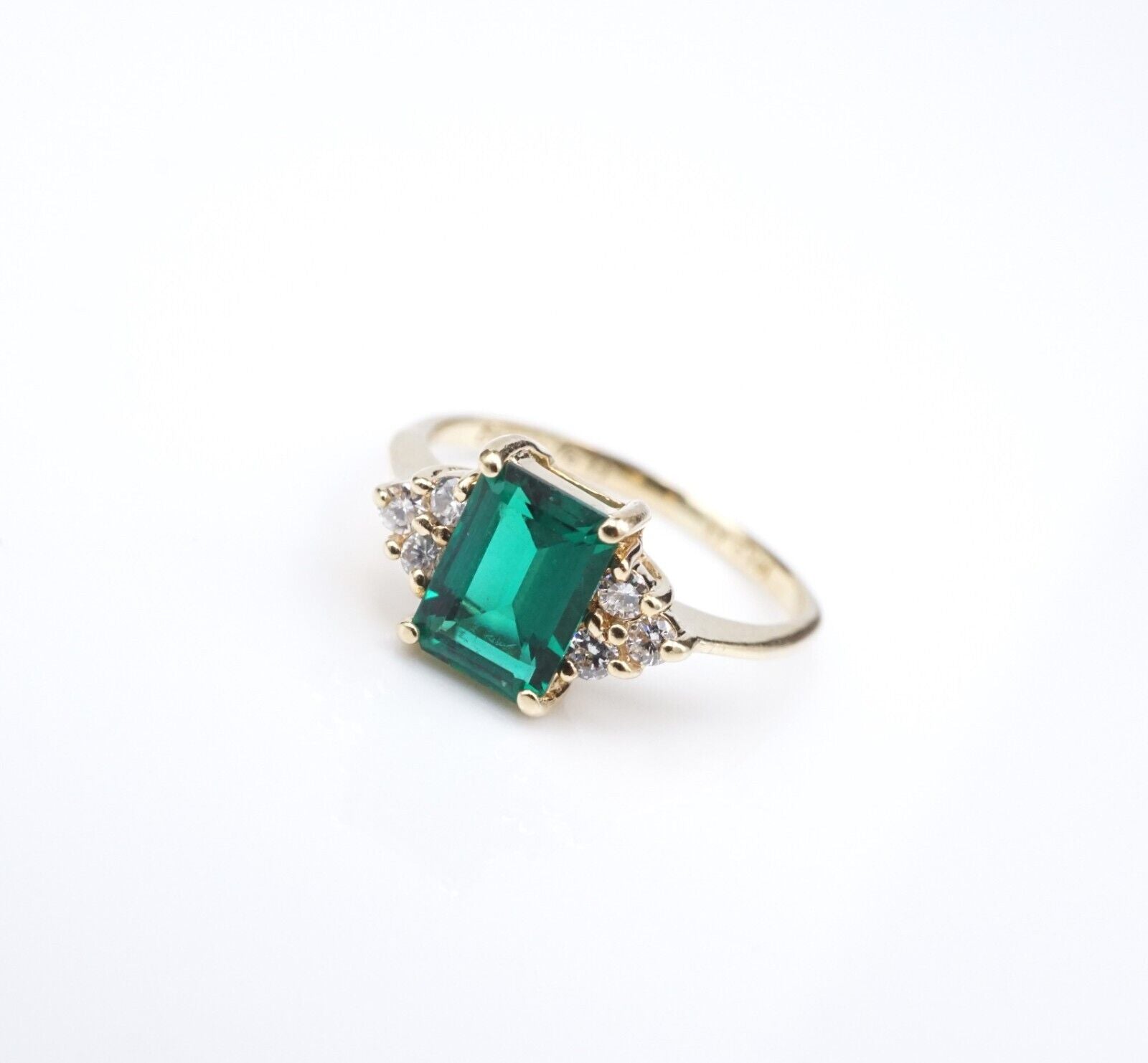 14k Chatham Emerald Diamond Ring Yellow Gold Vintage Petite Sizable RG4176