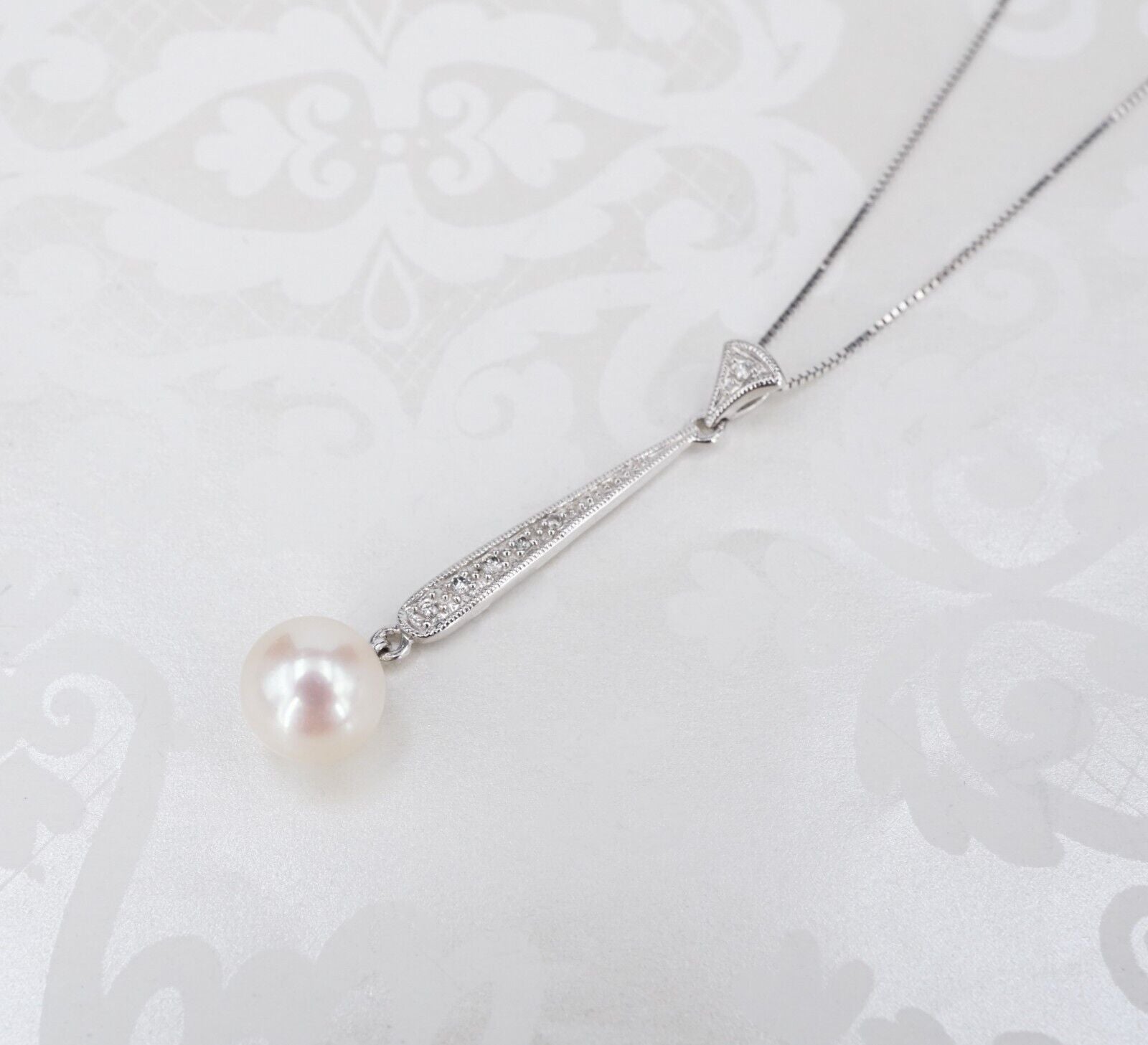 14k Diamond Pearl Y-Necklace Lariat Pendant White Gold 7mm 18" NG1475