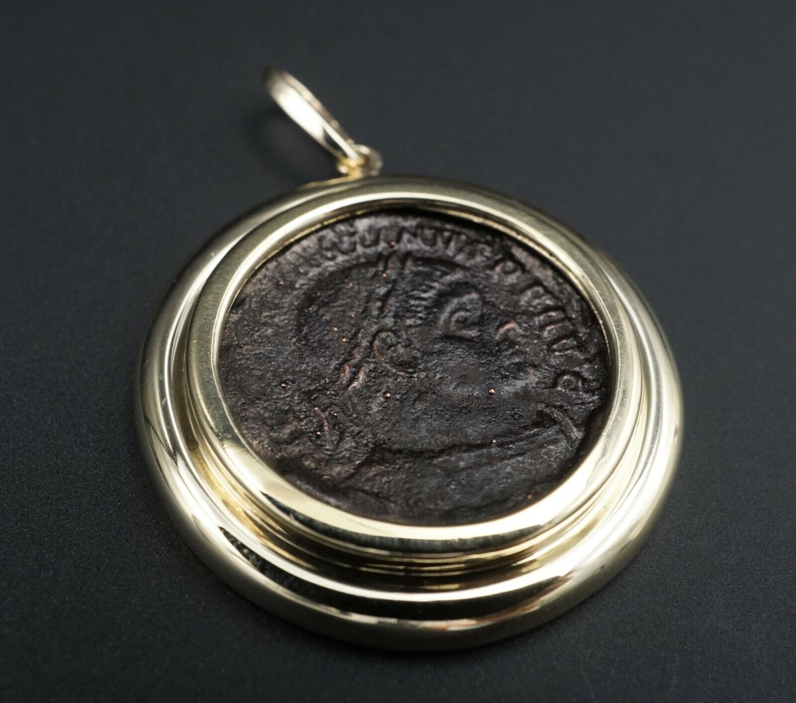 14k Gold Ancient Coin Pendant Roman Bronze Yellow 1.5" Free Shipping PG1304