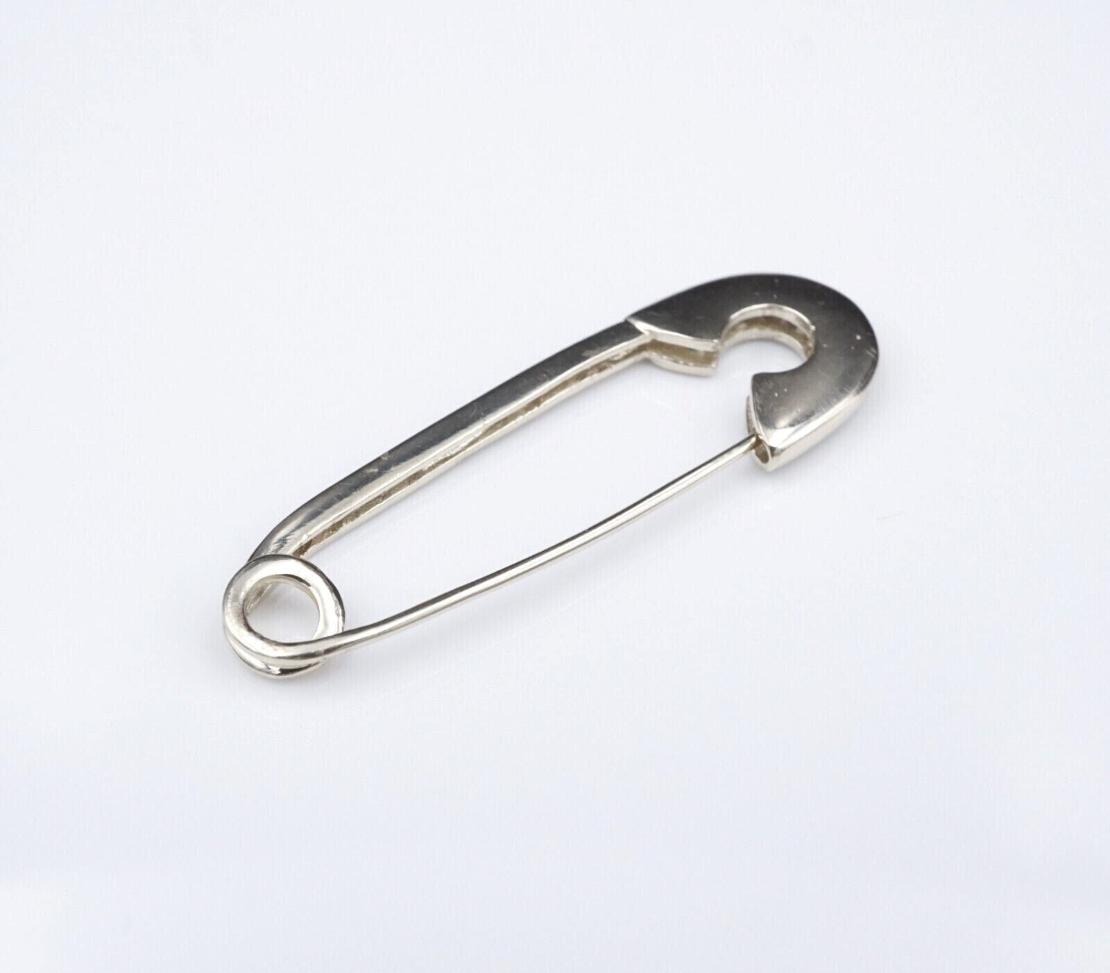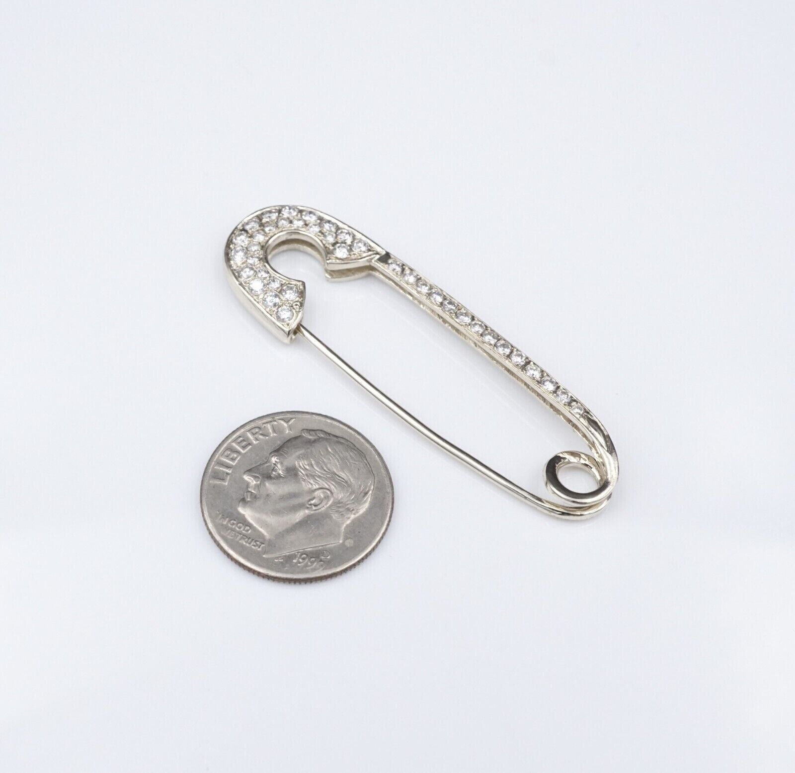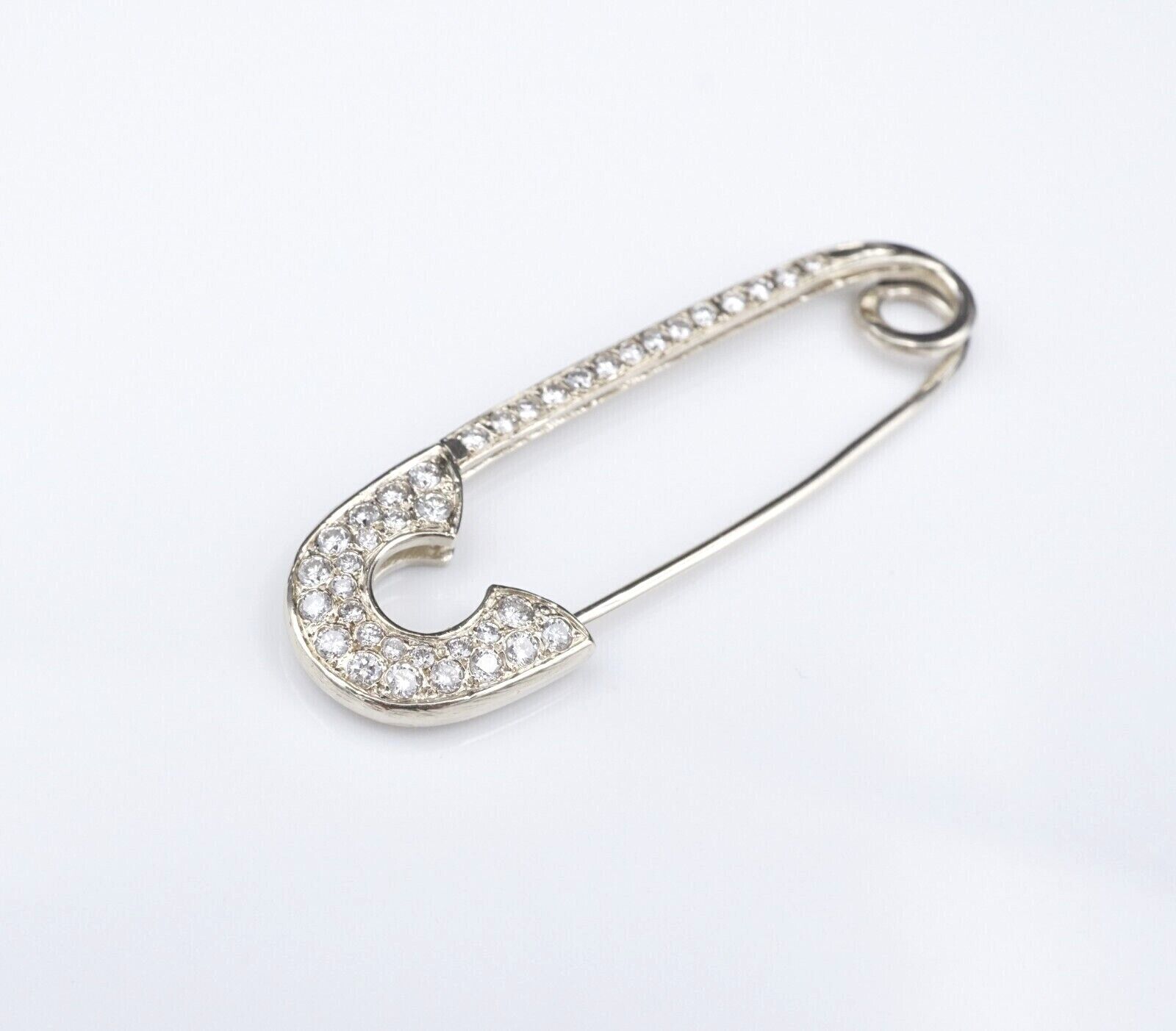 This beautiful safety pin brooch features sparkling natural diamonds set in 14k white gold. Perfect as a scarf pin or charm holder. A gorgeous piece for any collector of unique accessories.