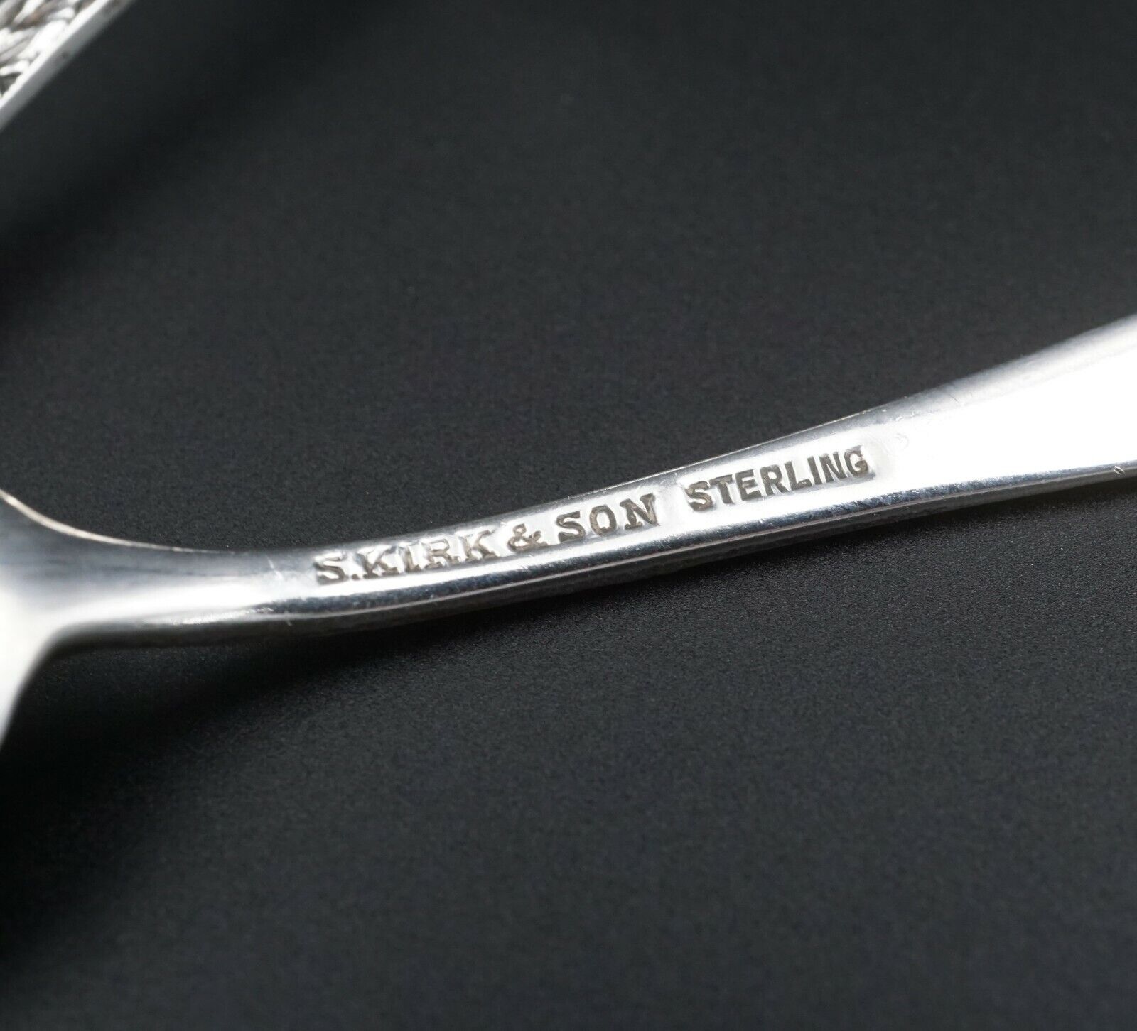 This set of four sterling silver teaspoons by S. Kirk and Son features the Repousse pattern. A beautiful addition to any antique flatware collection.