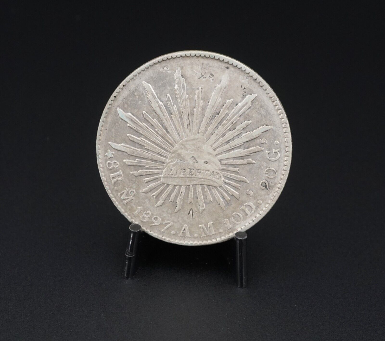 A chance to own a piece of history. Authentic 8 reales minted in Mexico City in 1897.