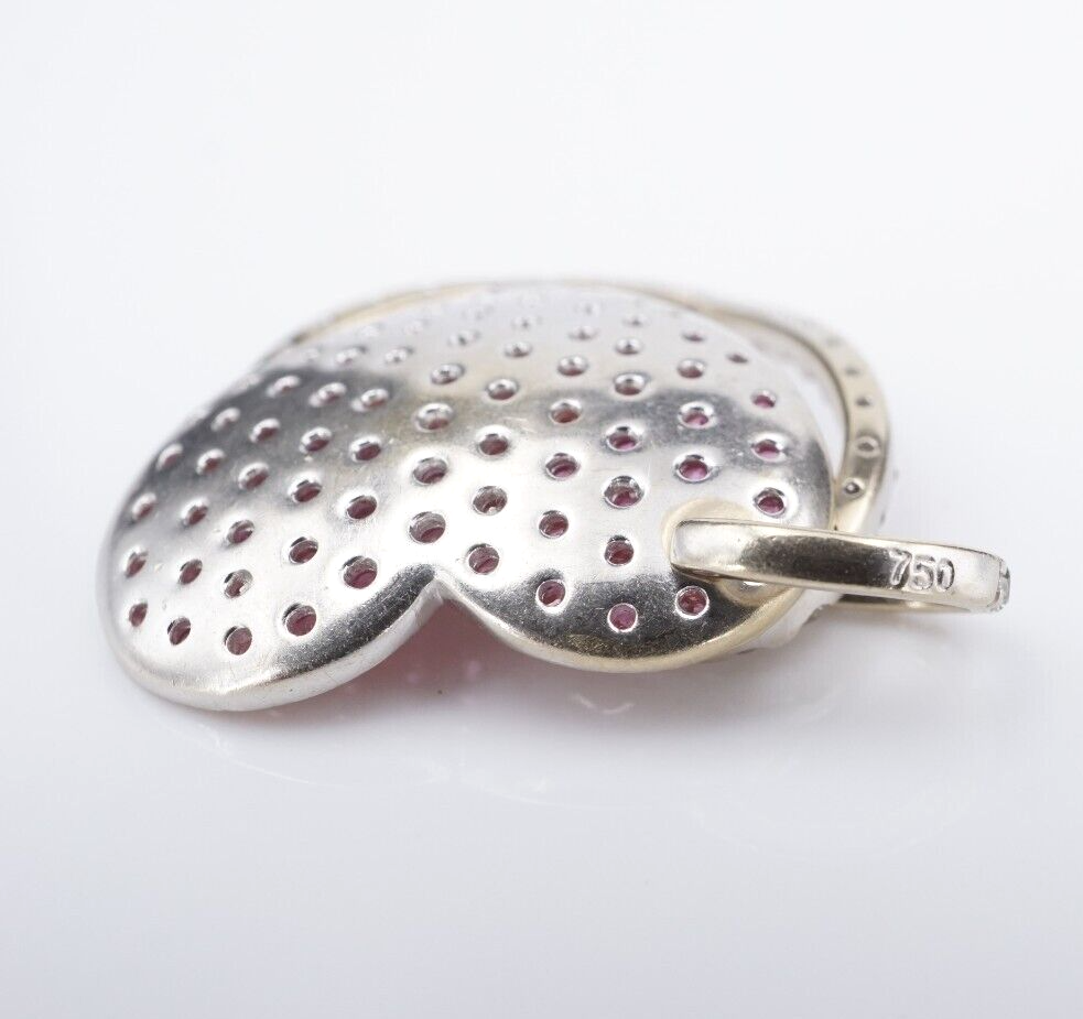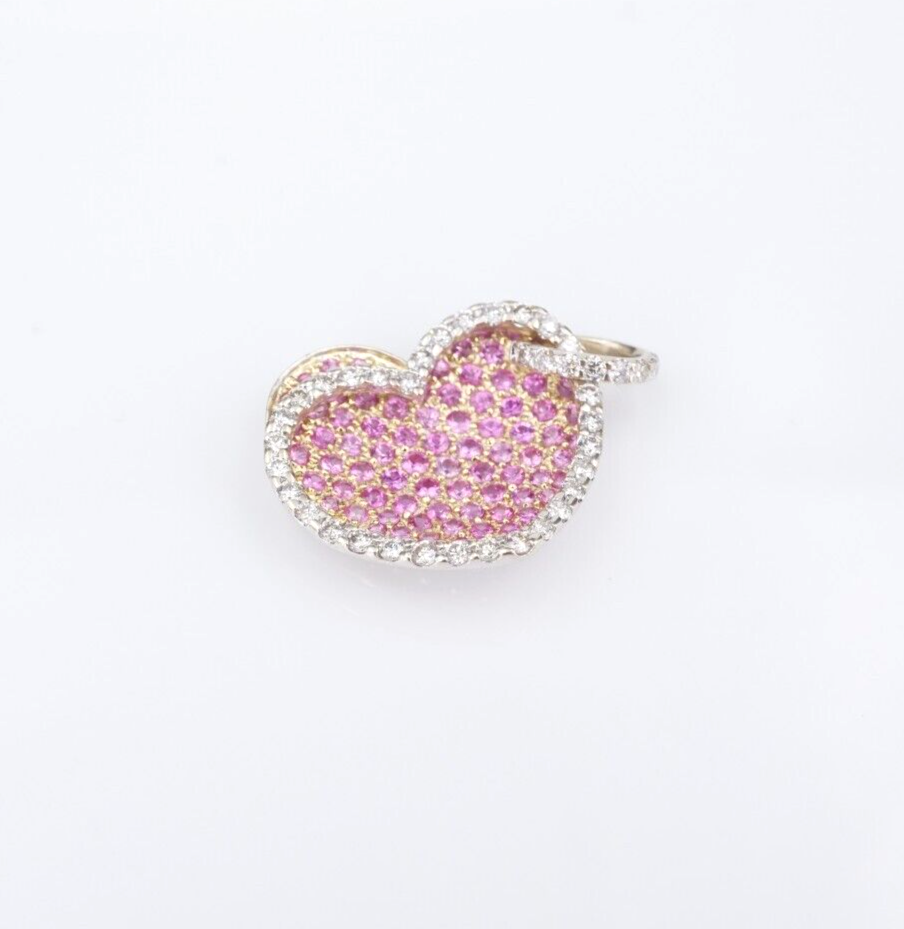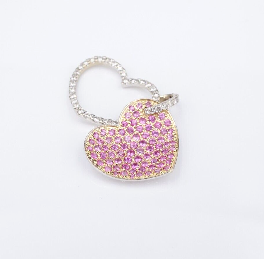 18k 2 Tone Gold Diamond Pendant Heart Pink Sapphire White Yellow 1" PG1897