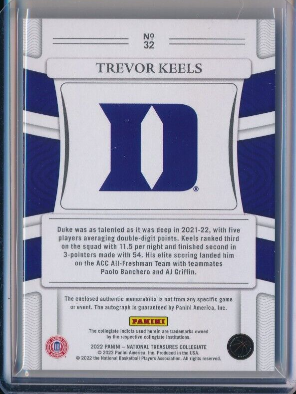 Box fresh. 2021-22 Panini National Treasures Collegiate Trevor Keels RPA Rookie Patch Autograph.