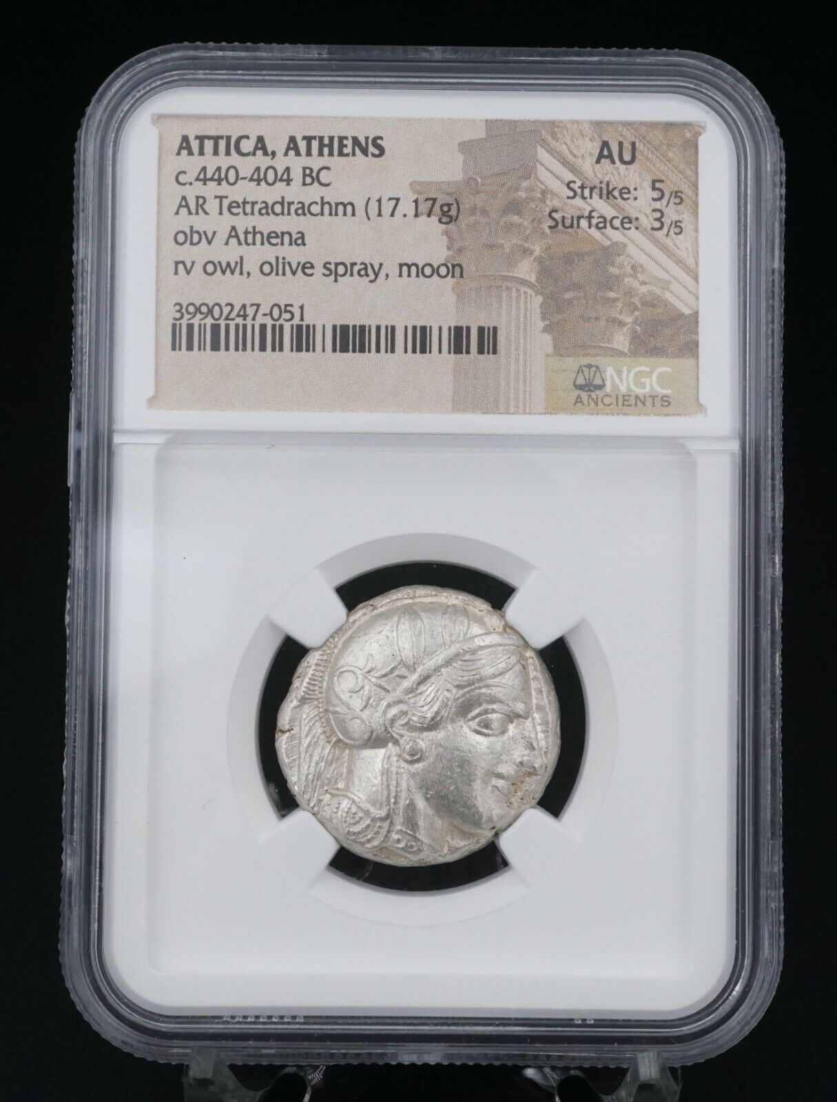Ancient Greece Athens Attica Tetradrachm 440-404 BC Silver Coin NGC AU 5/5 CN269