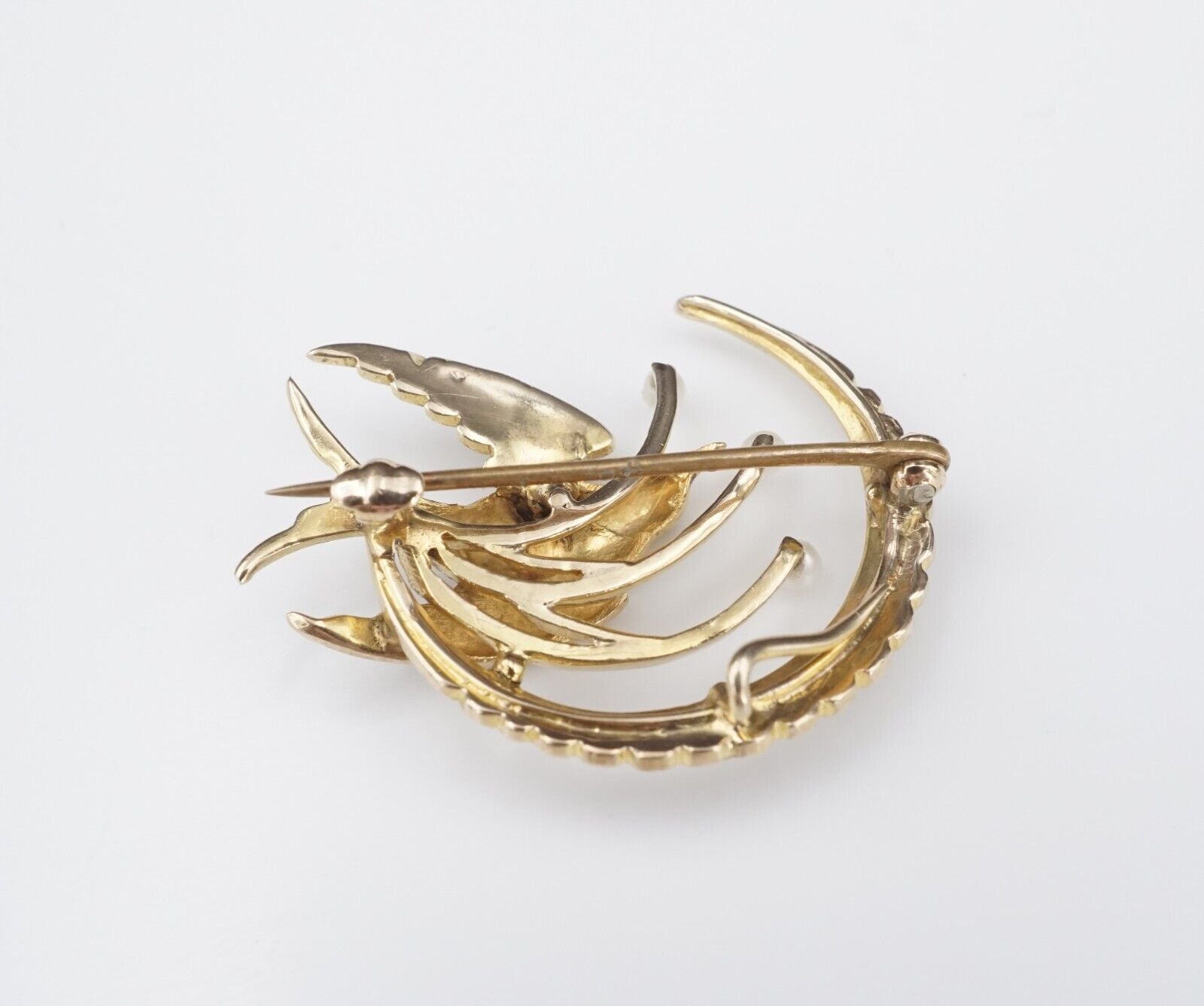 Antique 10k Brooch Victorian Seed Pearl Swallow Crescent Yellow Gold 1" OG482