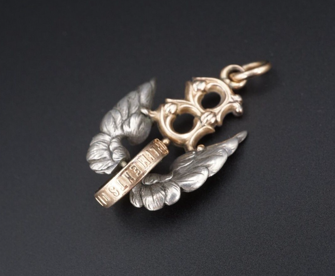 Antique Henry Bartholomay Brewing Pendant Rose Gold & Silver Wings 1.4" PG1802