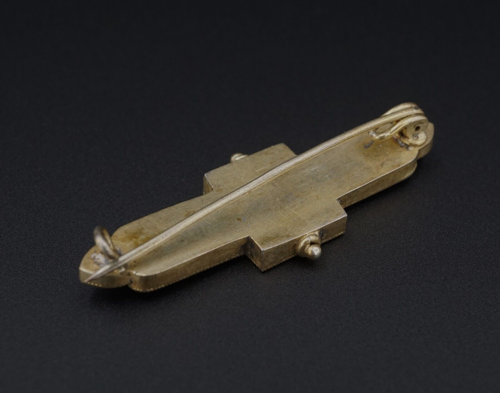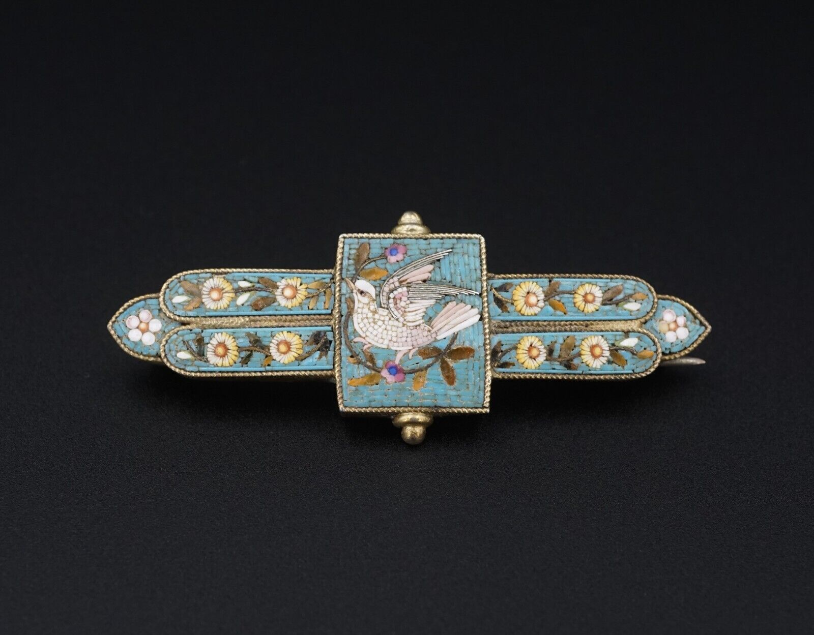 Antique Micro Mosaic Inlay Dove & Floral Bar Brooch OS648