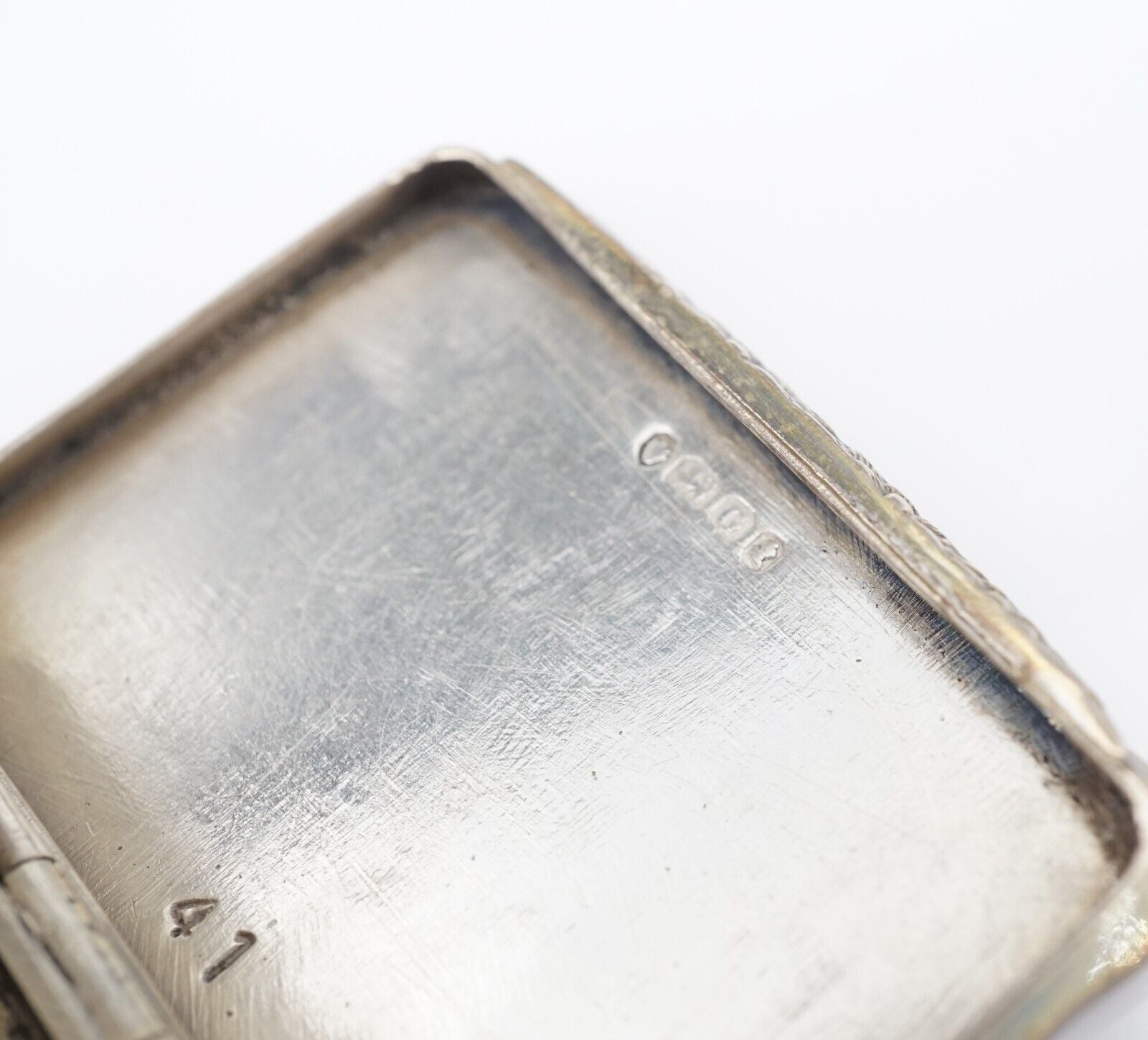 This rare ornate silver box was hand crafted in 1802 London. The entire case is full of detail, with scalloped edges and raised and etched designs. All original and in amazing condition.
