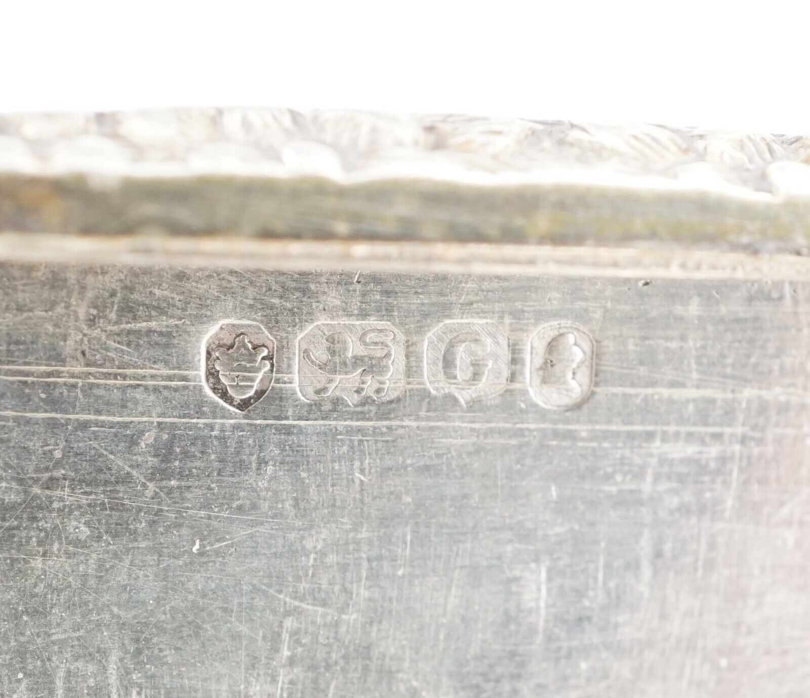 British Hallmarks, (lion head, lion, G, Bust)