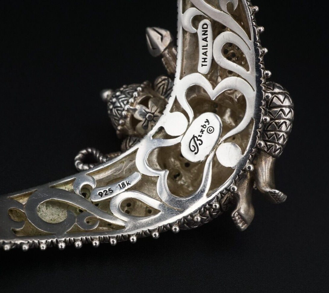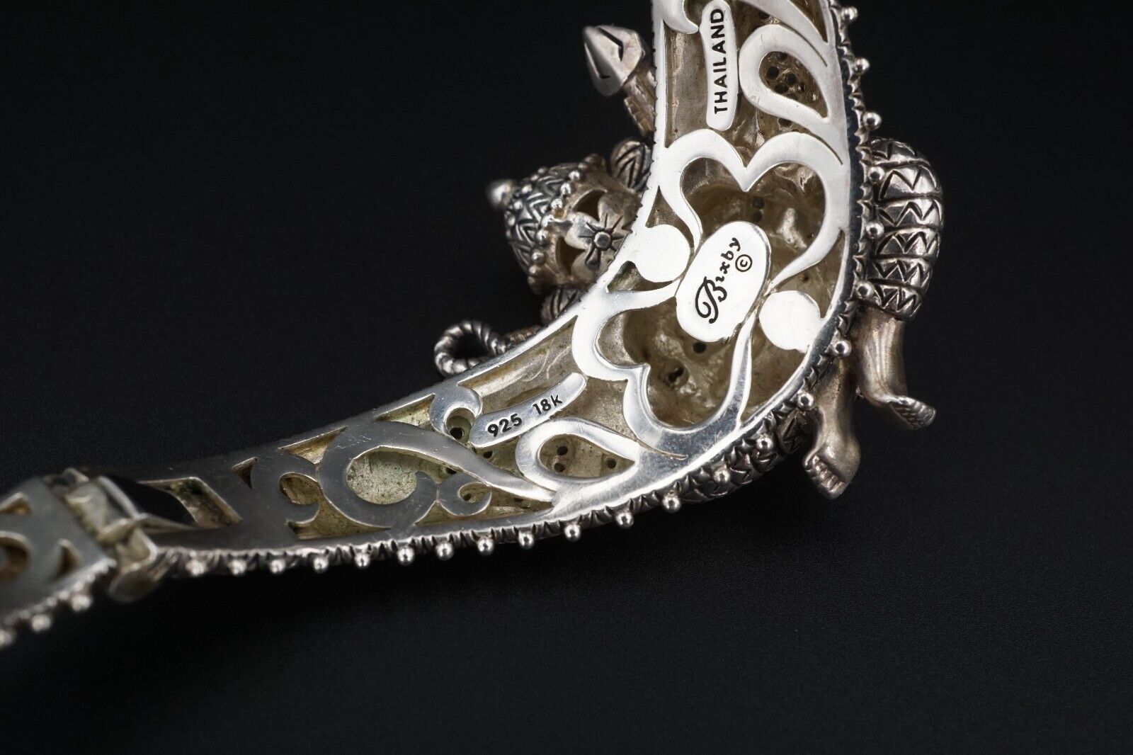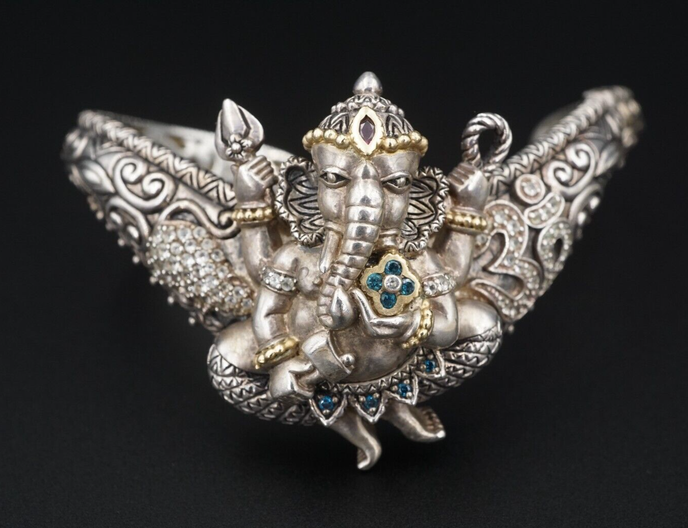 Barbara Bixby Sterling 18K Blue Diamond Gems Ganesh Cuff Bracelet Pouch BS2860