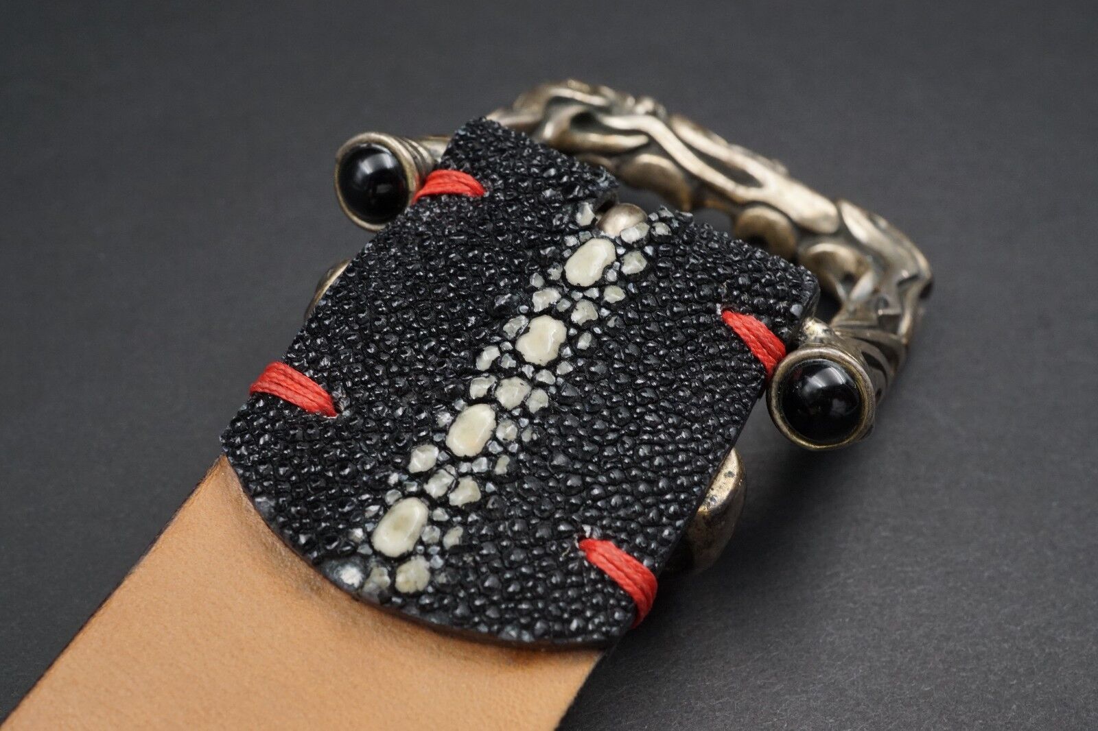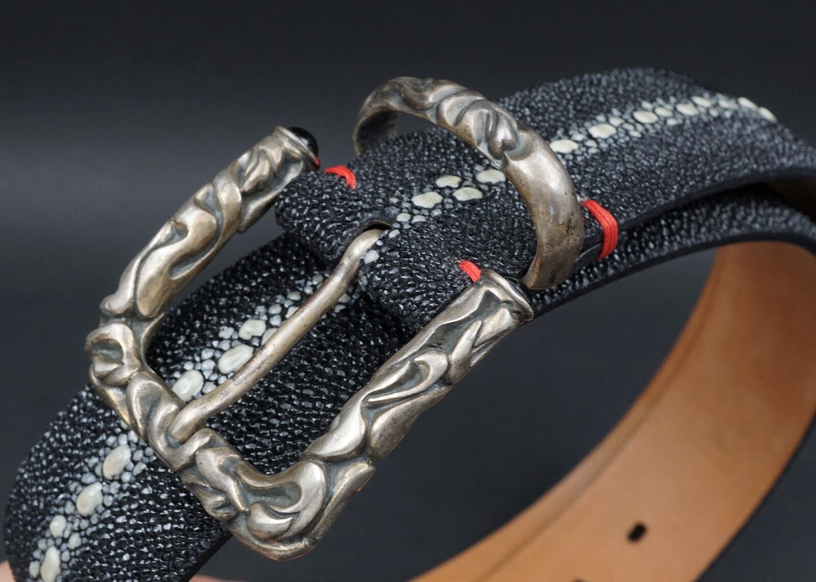 Claudio Calestani Sterling Silver Galuchat Leather Belt Buckle Janet Brown M261