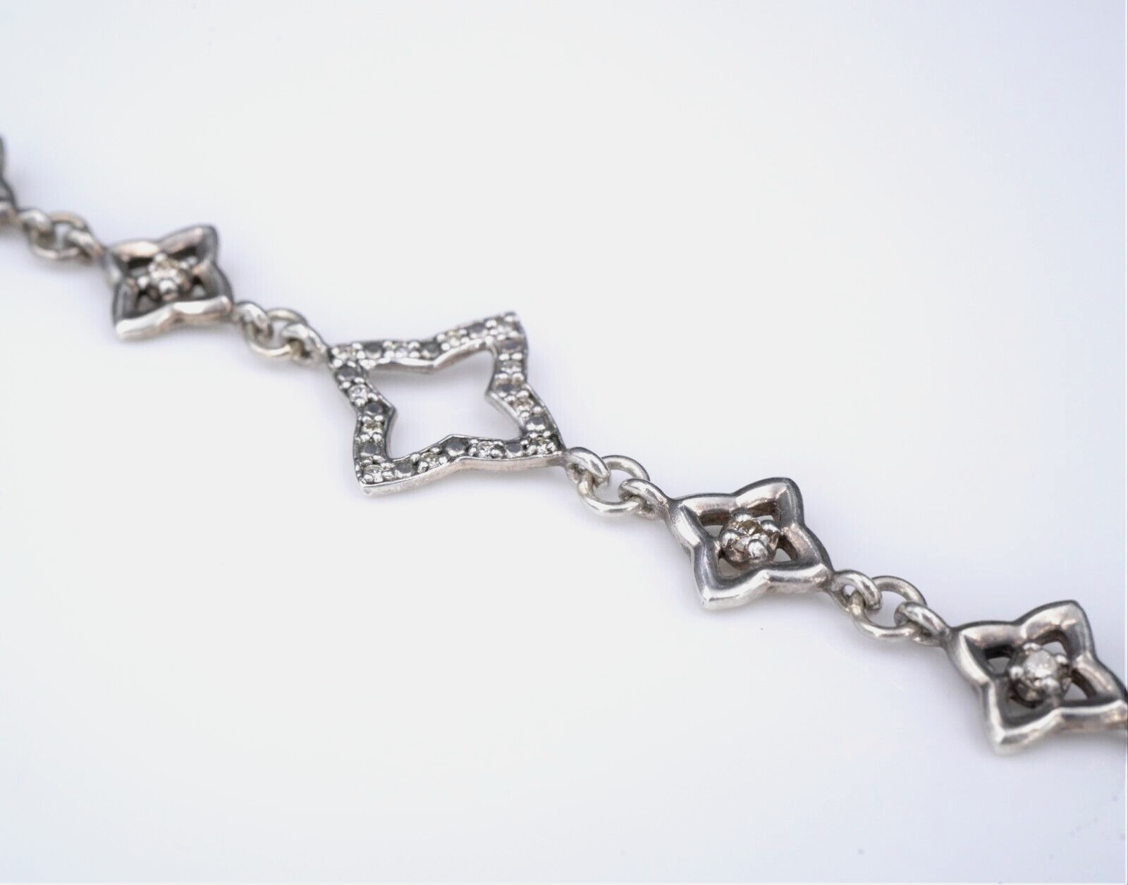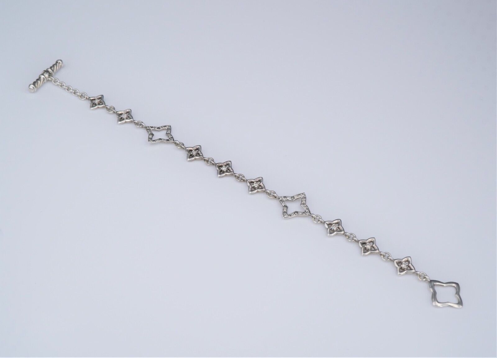 David Yurman Diamond Bracelet Toggle Sterling Silver Quatrefoil 7.5" BS2692