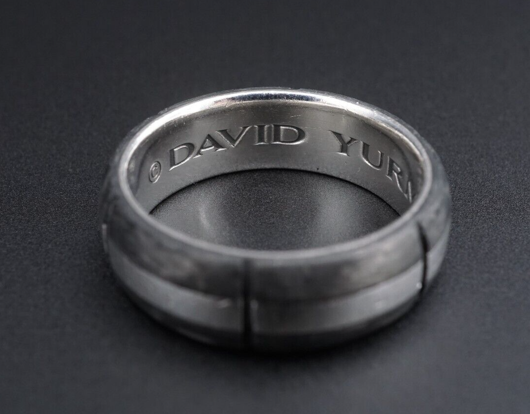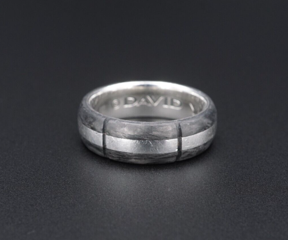 David Yurman Forged Carbon Sterling Silver Band Ring w/Box 8mm Designer RS3505
