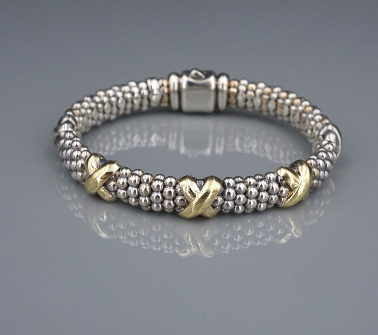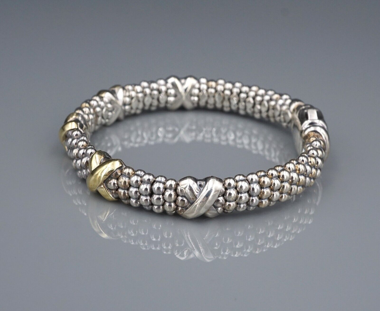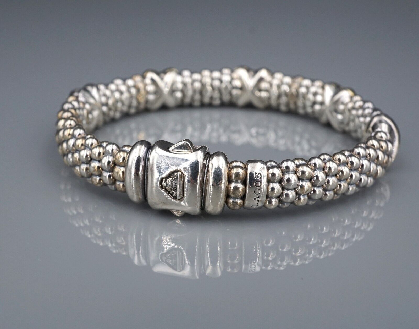 Five Station X Lagos Caviar Bracelet 18k Gold Sterling Silver 6.75" 9mm BS2972