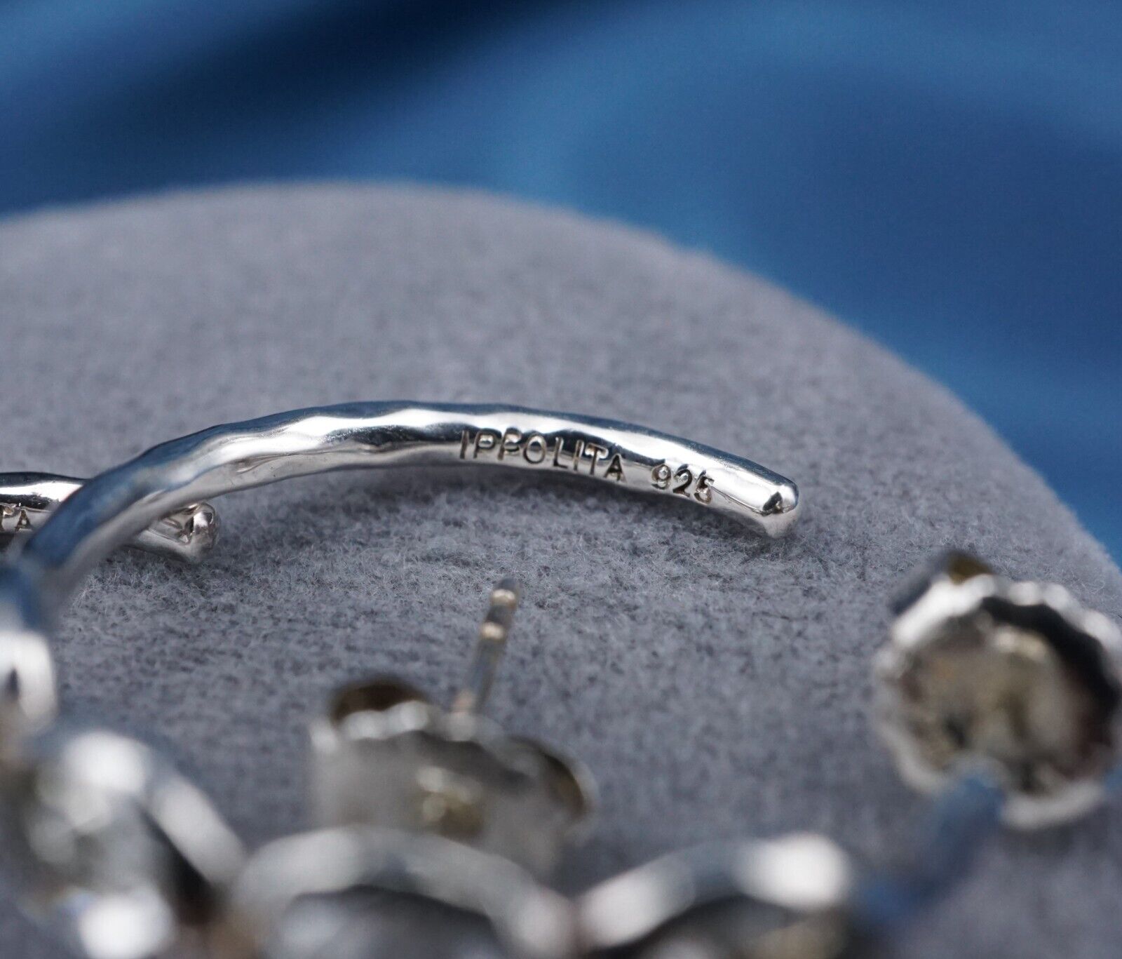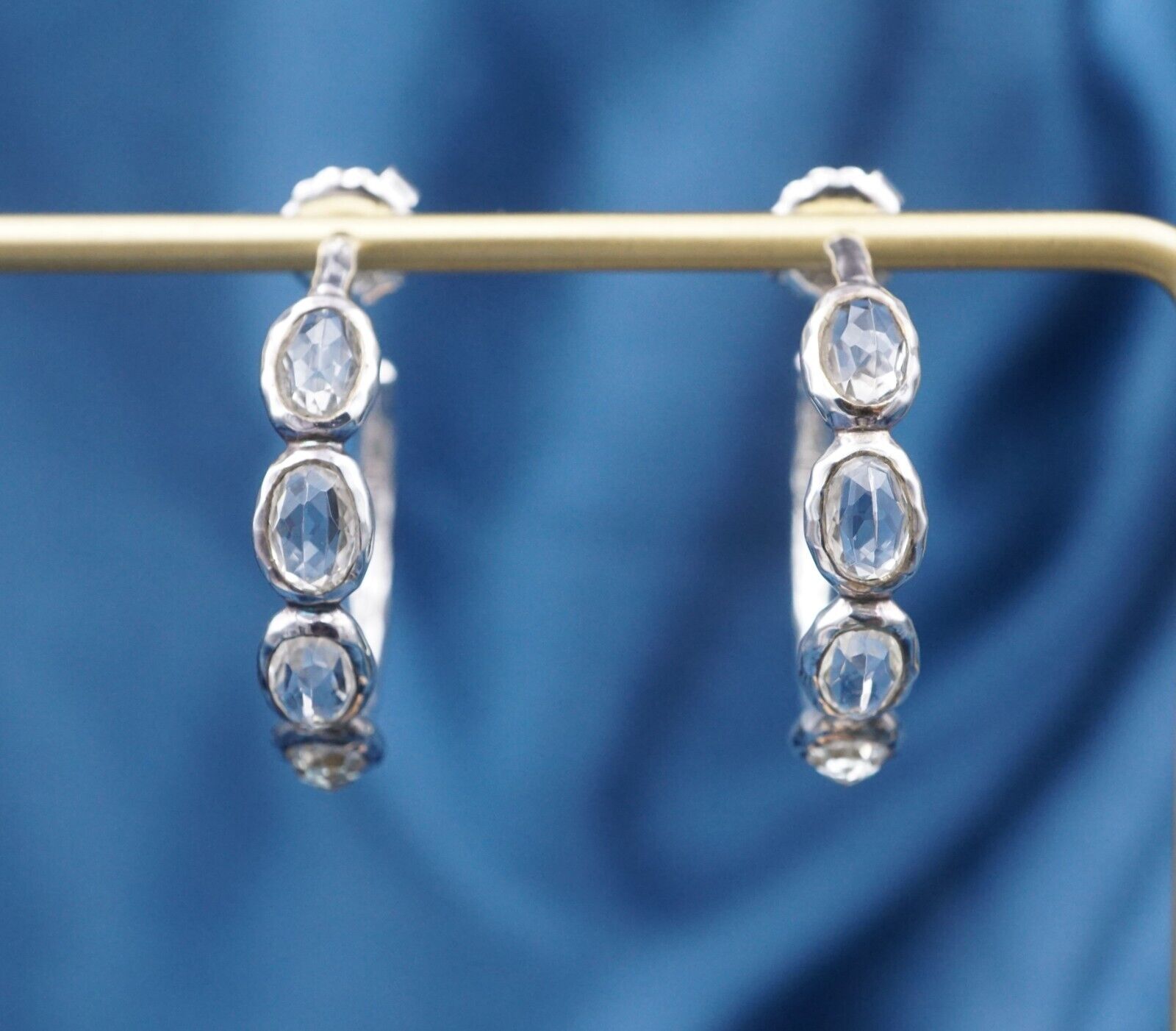Described by Ippolita as - These hoop earrings in 925 silver are a bright, versatile addition to your daytime attire. The silver structure bears IPPOLITA's distinctive textured surface that incorporates four bezel-set rock crystal ovals cut by hand with the exclusive Rock Candy® facets, designed to make the most of the stones' natural brilliance.