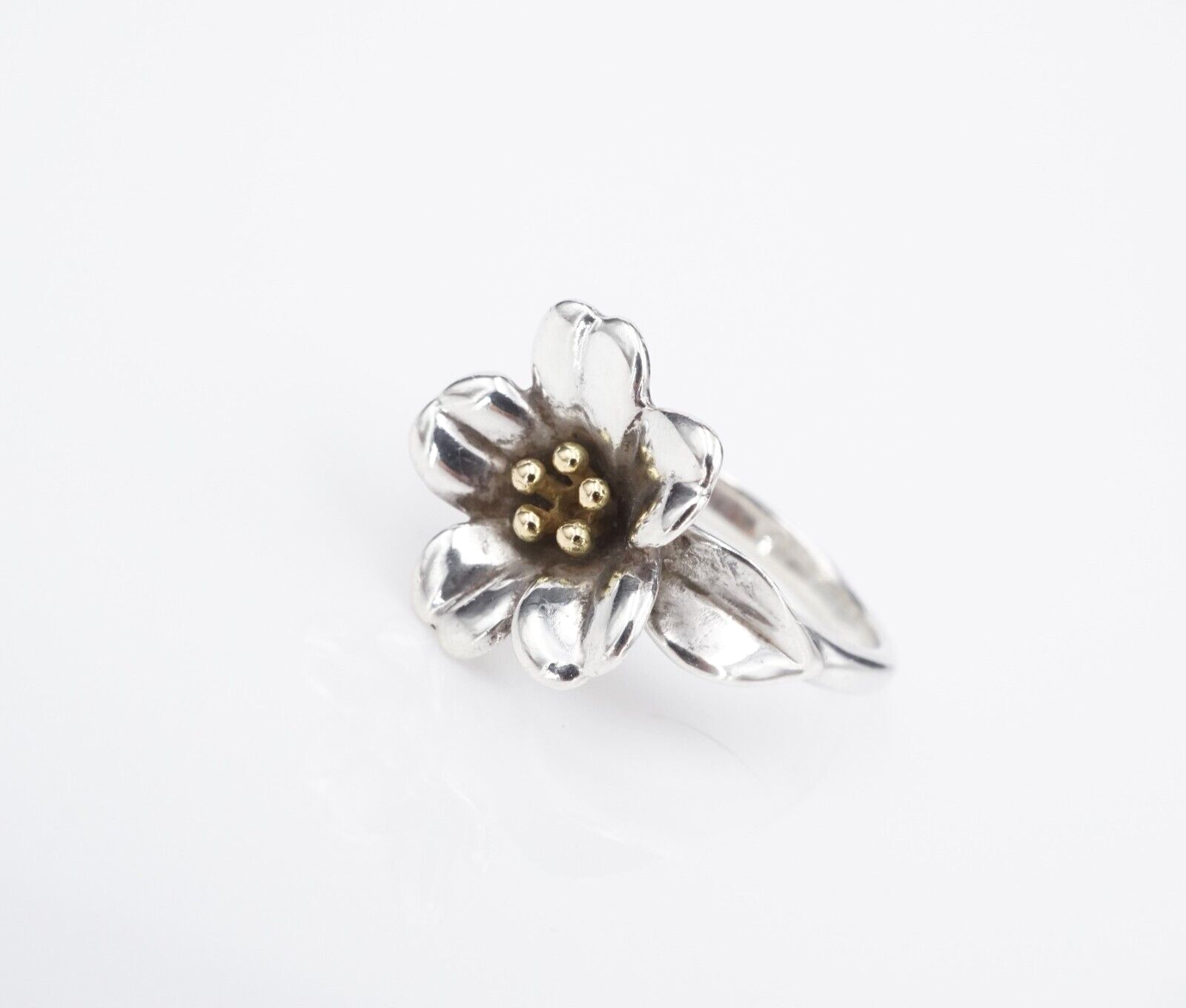 James Avery April Flowers Sterling Silver 18k Gold Ring Size 6 Retired RS3585