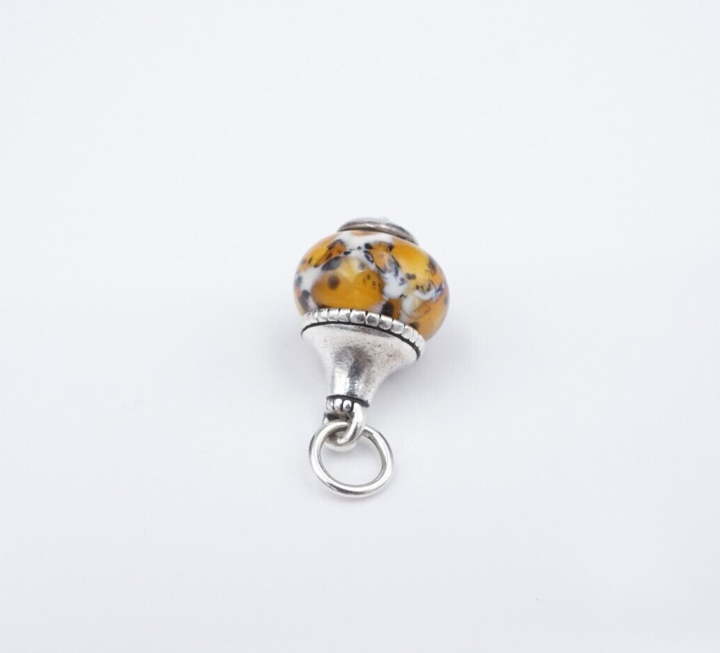 This retired James Avery charm features a bulb of speckled orange glass set in a solid sterling silver finial. A fun look that is sure to be an instant favorite!