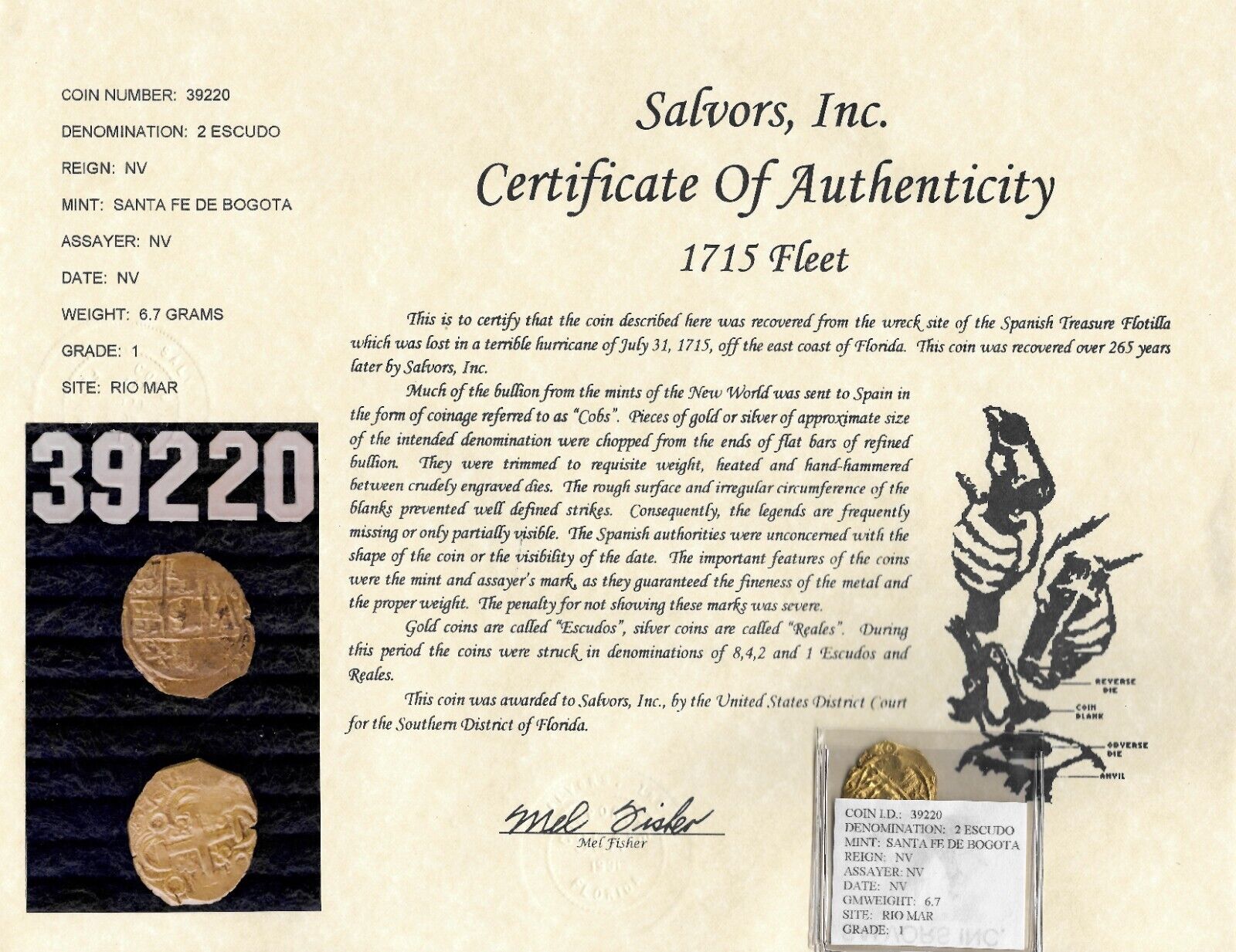 Eco Estate Jewelry is pleased to offer you this 1600s Atocha 2 Escudo Gold Cob!