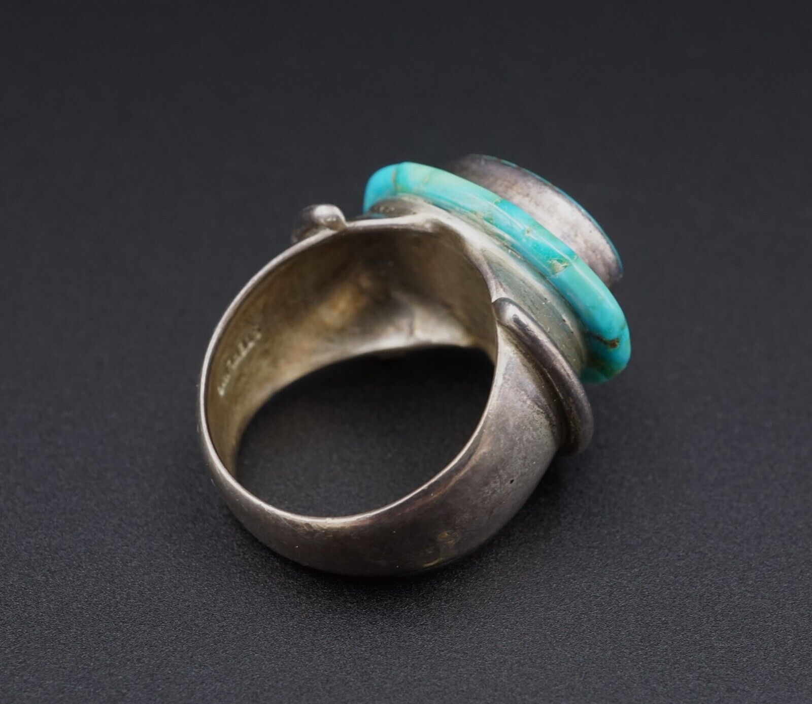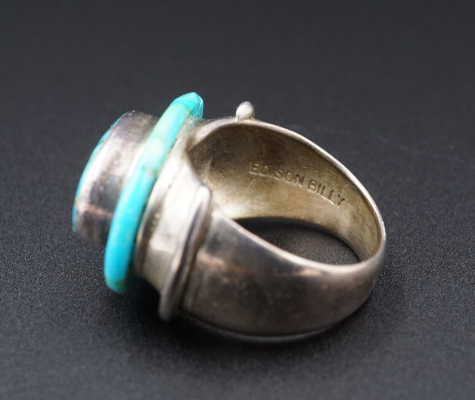 Navajo Edison Billy Sterling Silver Turquoise Mosaic Inlay Ring Size 7 RS3429