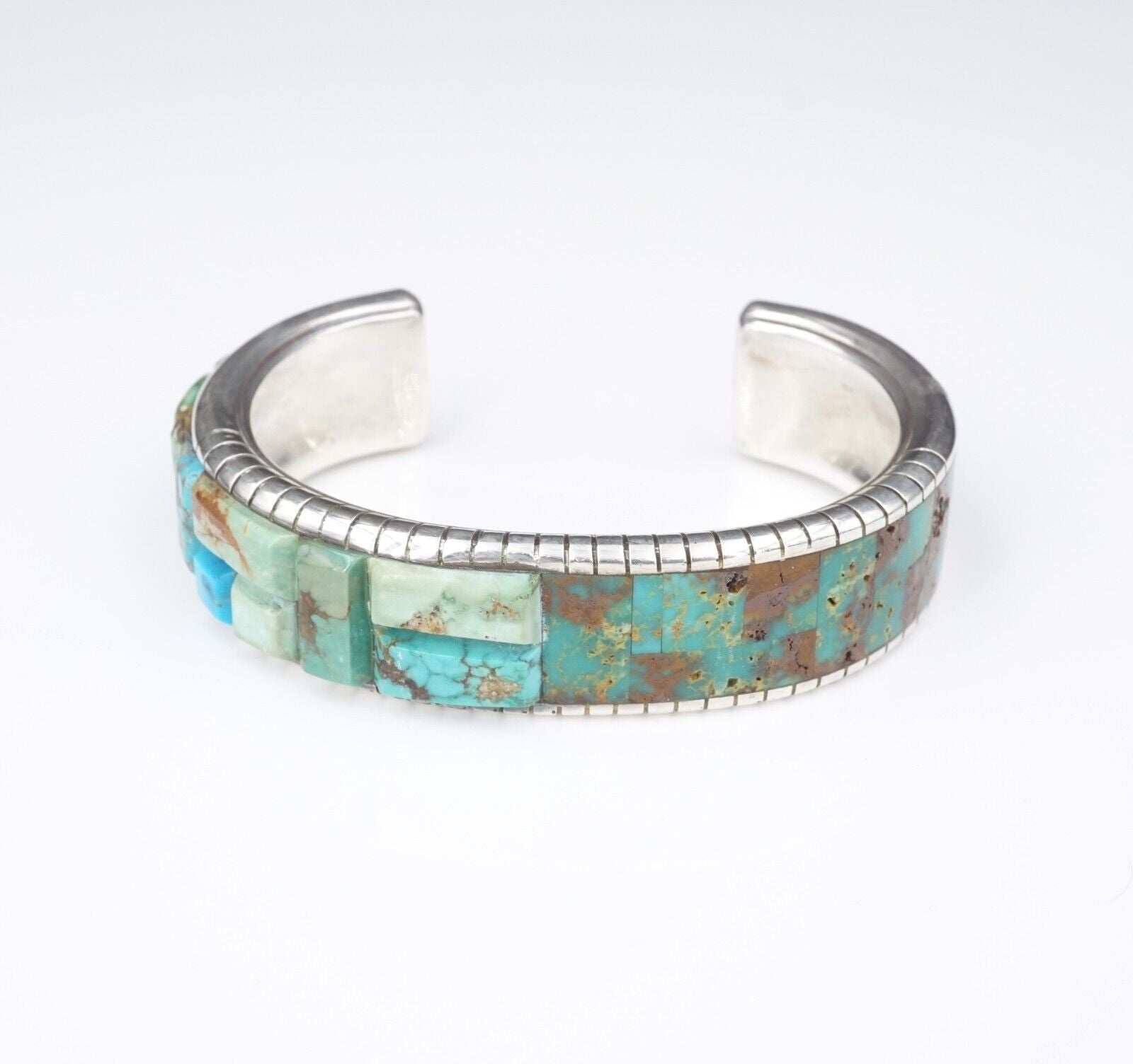 Navajo Sterling Silver Turquoise Bracelet Cobble Inlay Francis Melvin BS2882