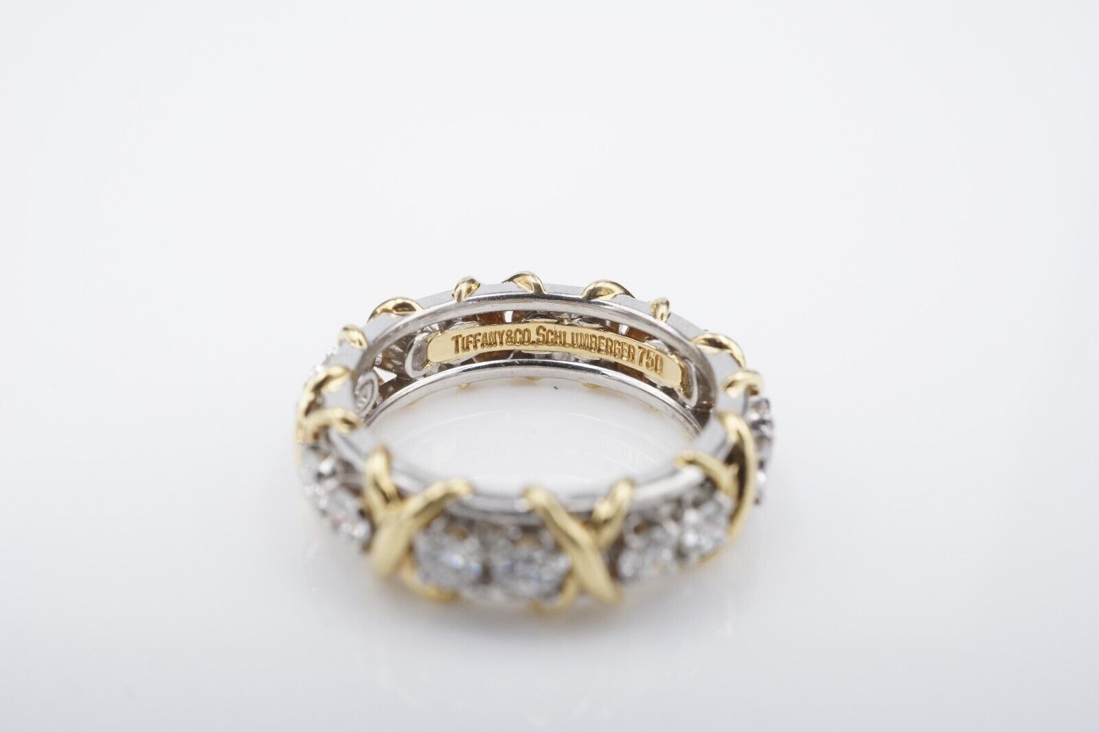 Platinum 18k Tiffany Schlumberger 16-Stone Diamond Band X Ring Size 5.5 RG4142