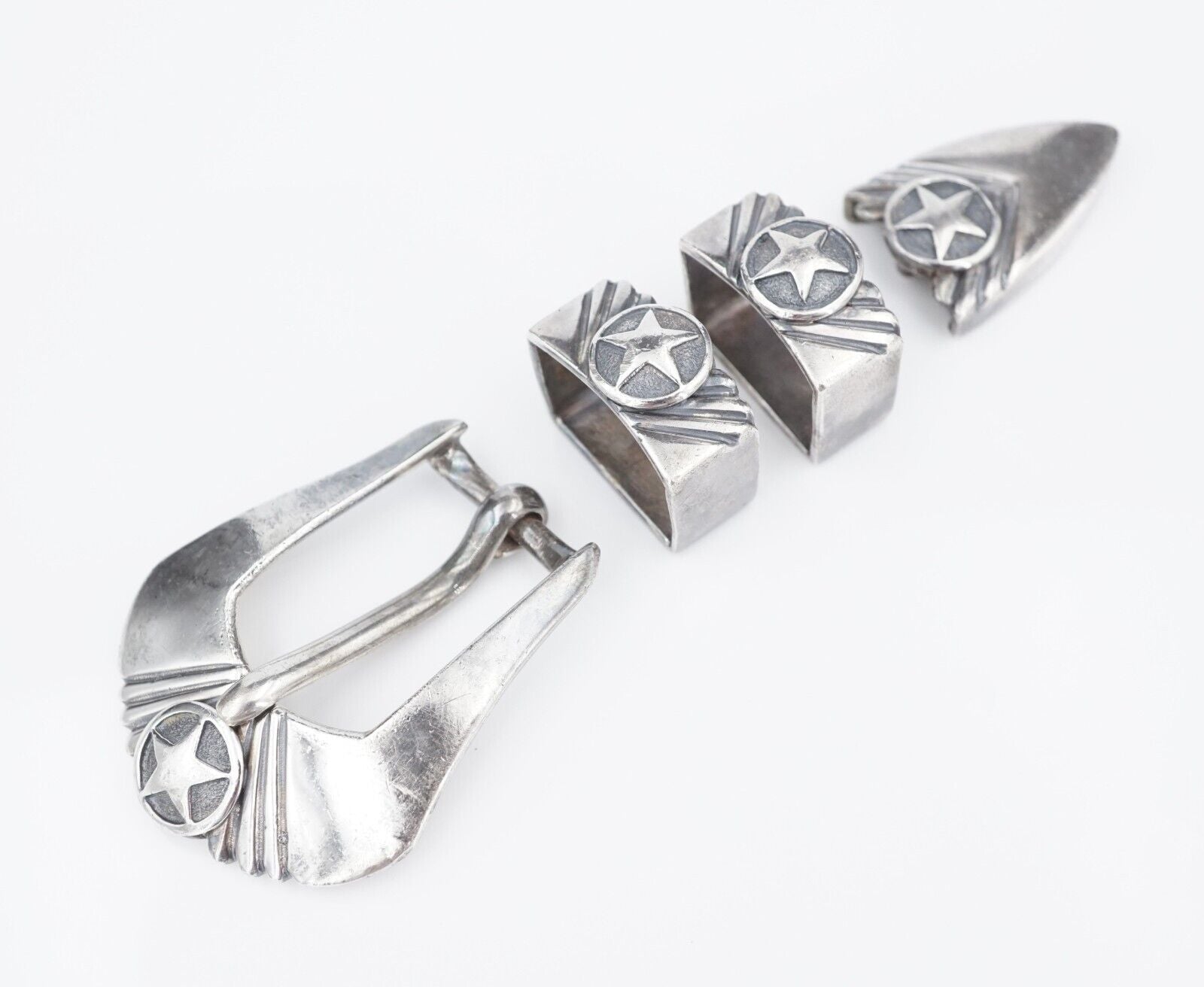 RDM Sterling Silver 4pc Ranger Star Buckle Belt Randall Moore Santa Fe Vtg M1841