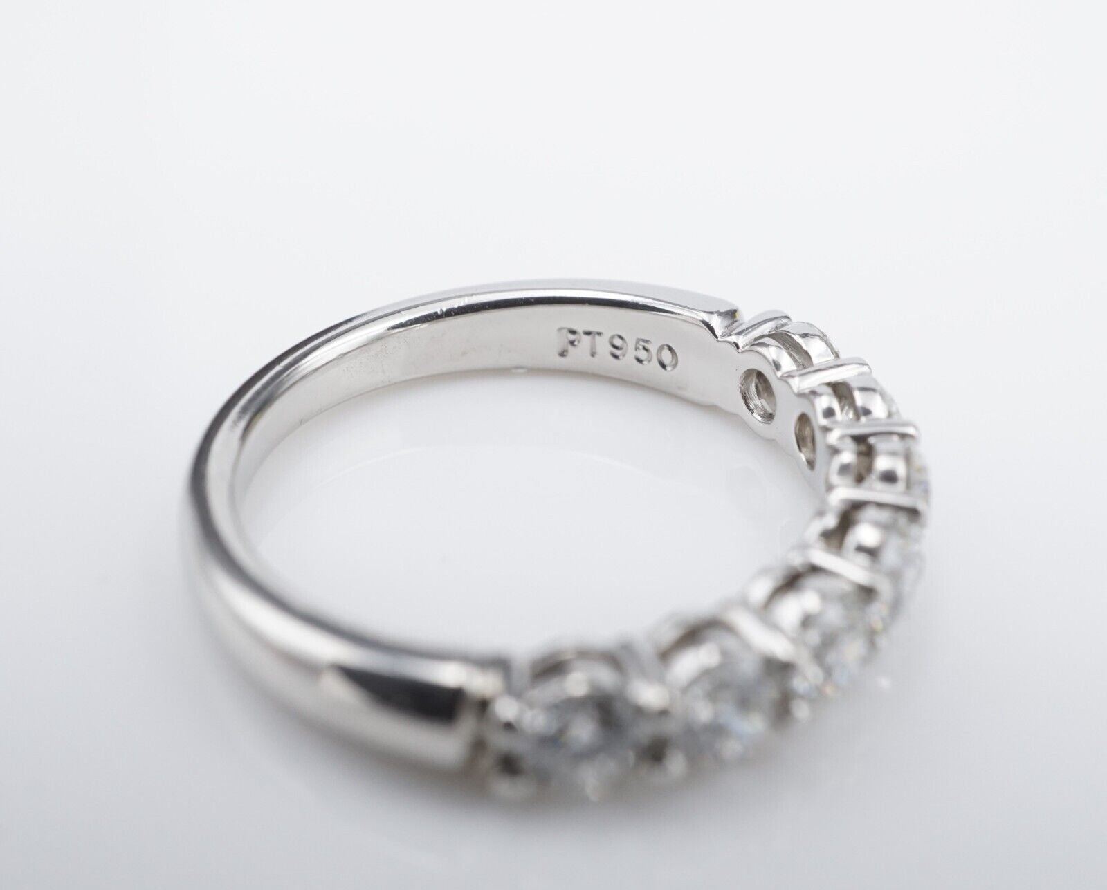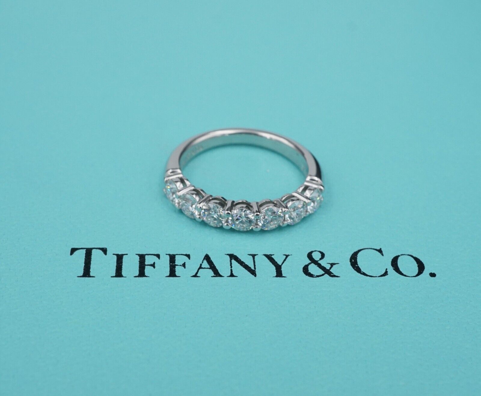 This gorgeous and classic Tiffany & Co. "Forever" ring features a classic platinum design with diamonds set across the face of the band. Described by Tiffany as: Each Tiffany Forever ring celebrates the eternal bond of lifelong love and commitment. A half-circle of round brilliant diamonds traces this timeless platinum band. Pair it with a mixed metal ring stack for a modern finish. Platinum with a half-circle of round brilliant diamonds. Currently retails for $6550 plus tax. Now you can own it for less!