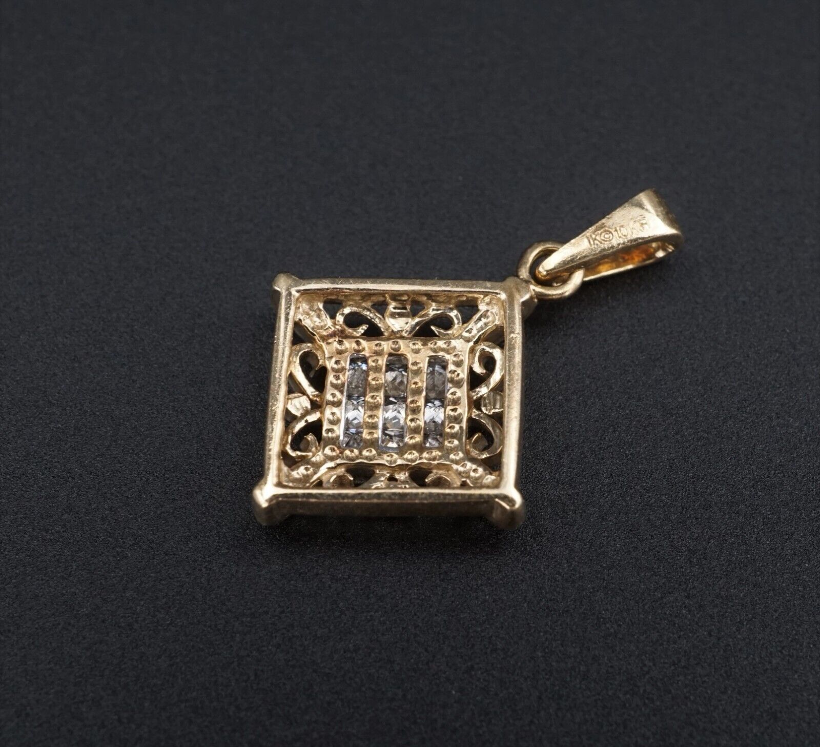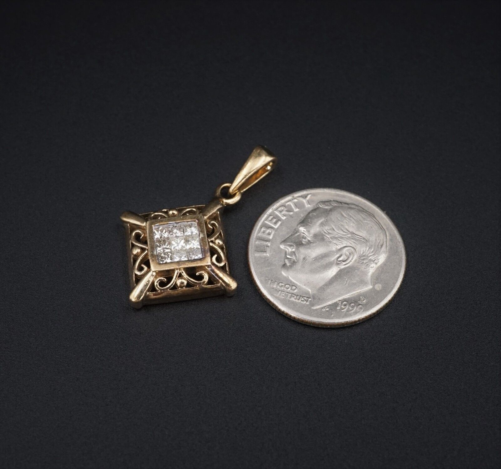 Vintage 10k Yellow Gold 1/4 ctw Natural Diamond Invisible Set Pendant 1" PG1768