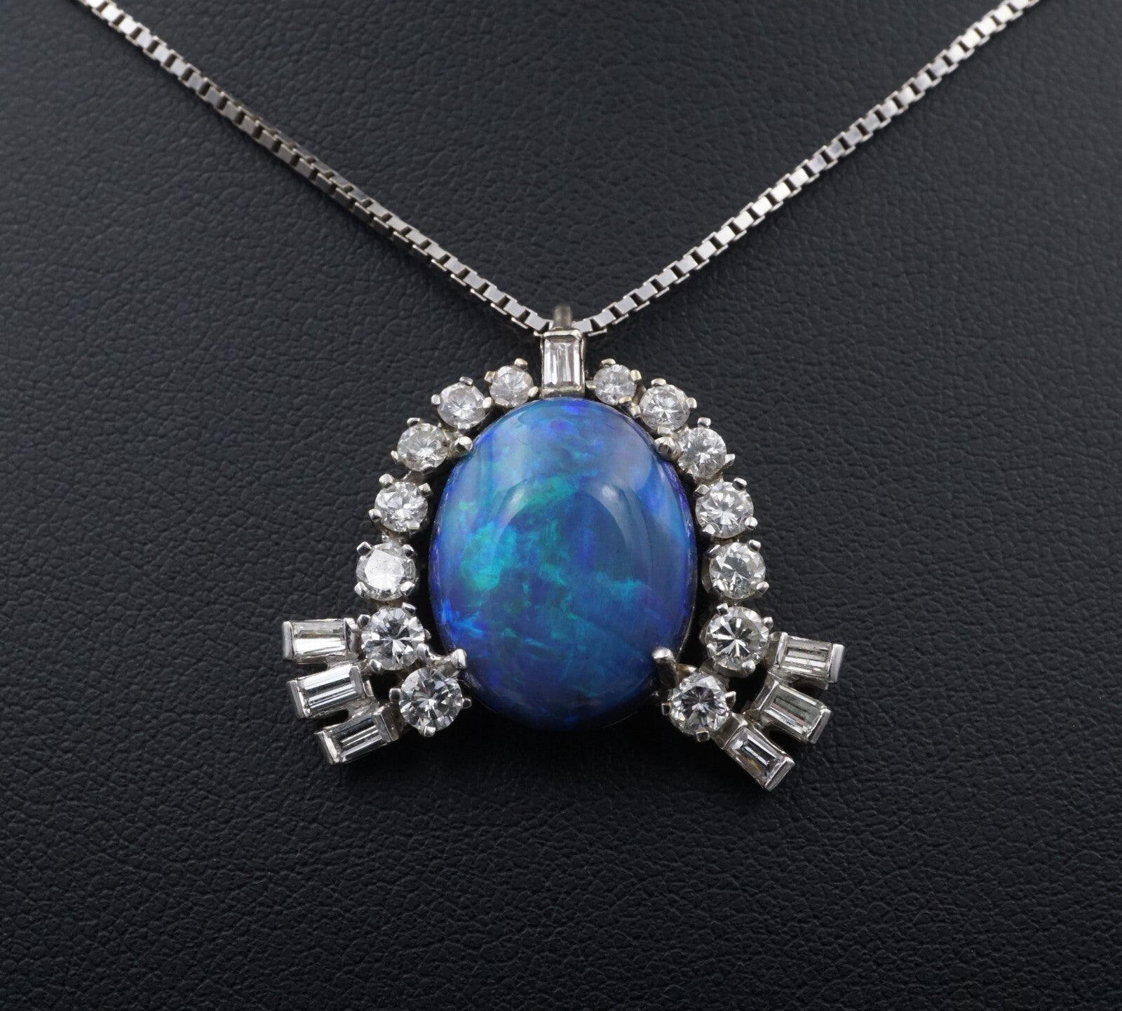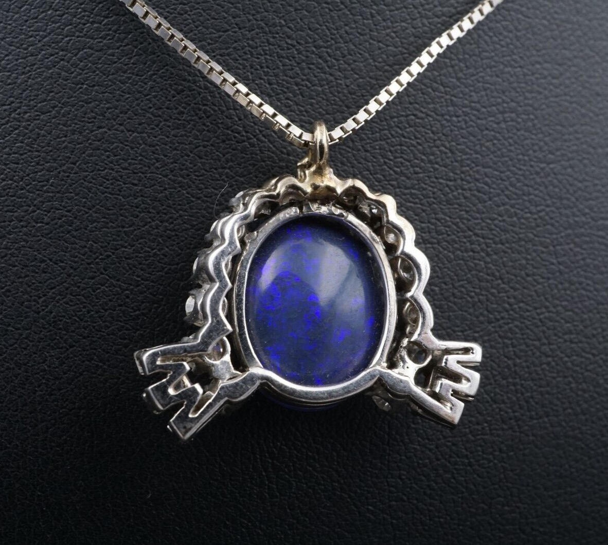 Vintage 5ct Black Opal Diamond Pendant Necklace White Gold 17.5" NG1646
