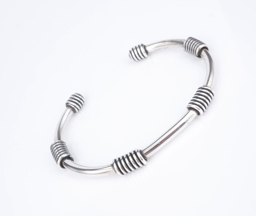 This beautiful designer James Avery cuff bracelet is a retired piece, crafted from solid sterling silver with four wire-wrapped stations. A fun look, perfect for wearing on its own, or for stacking with other bracelets.