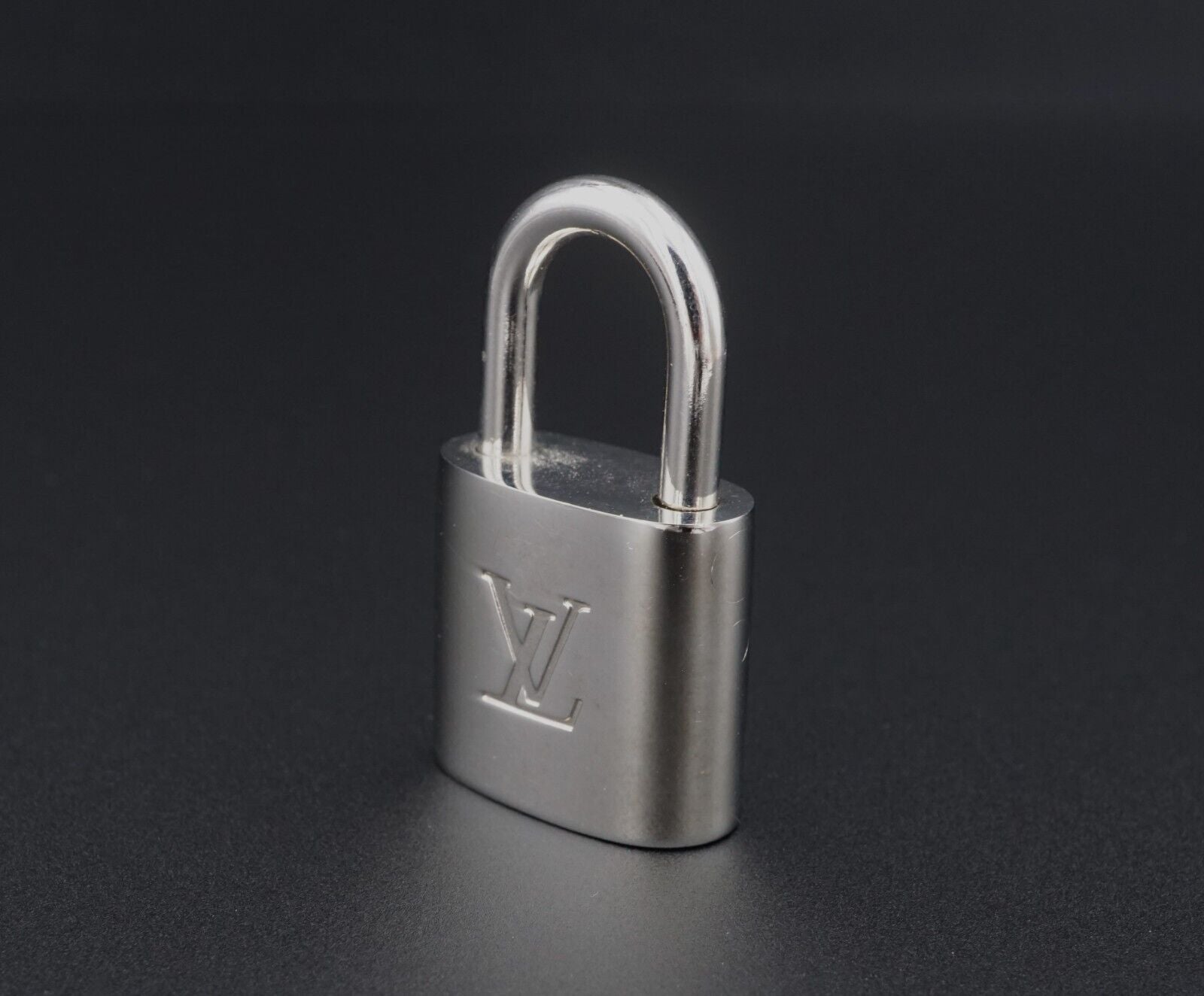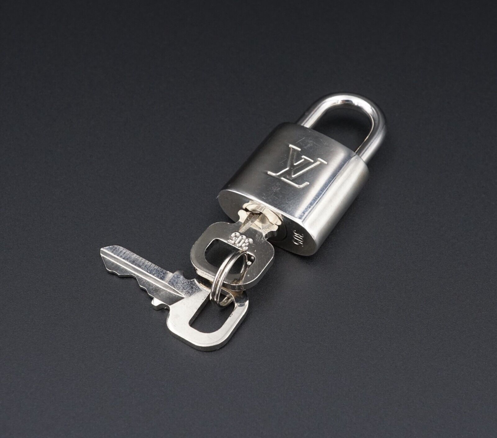 This incredible Louis Vuitton piece features a sturdy padlock engraved with the iconic "LV" initials. Complete with a set of keys, this piece is a perfect addition to any collection!