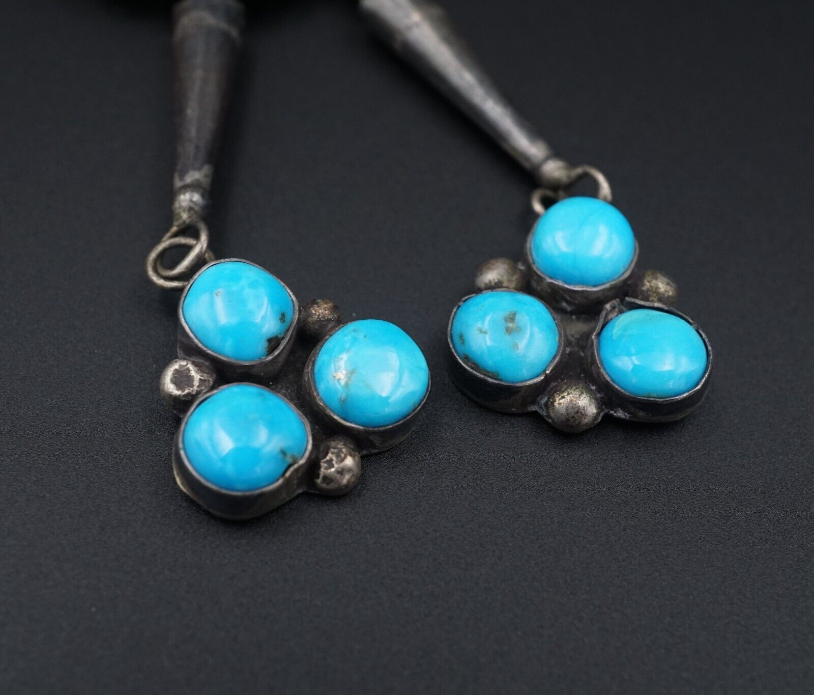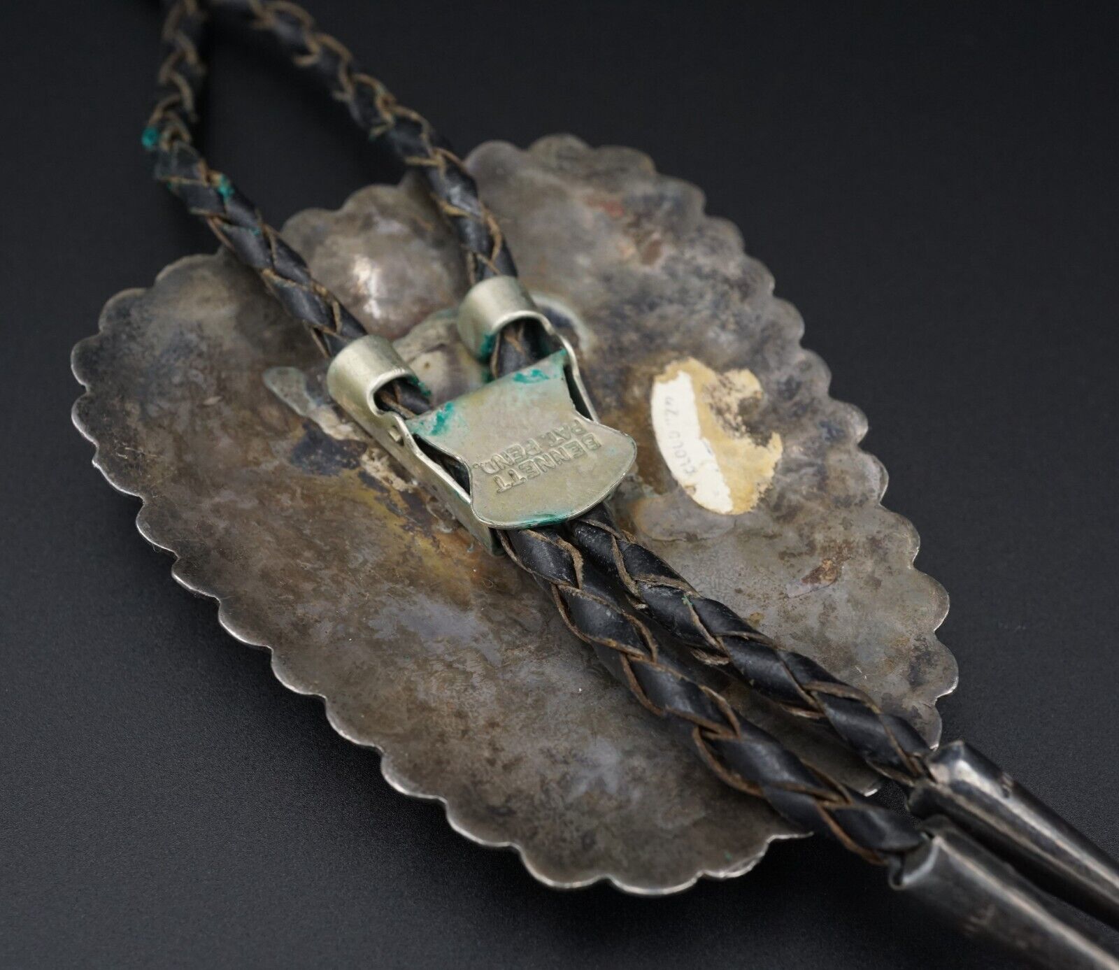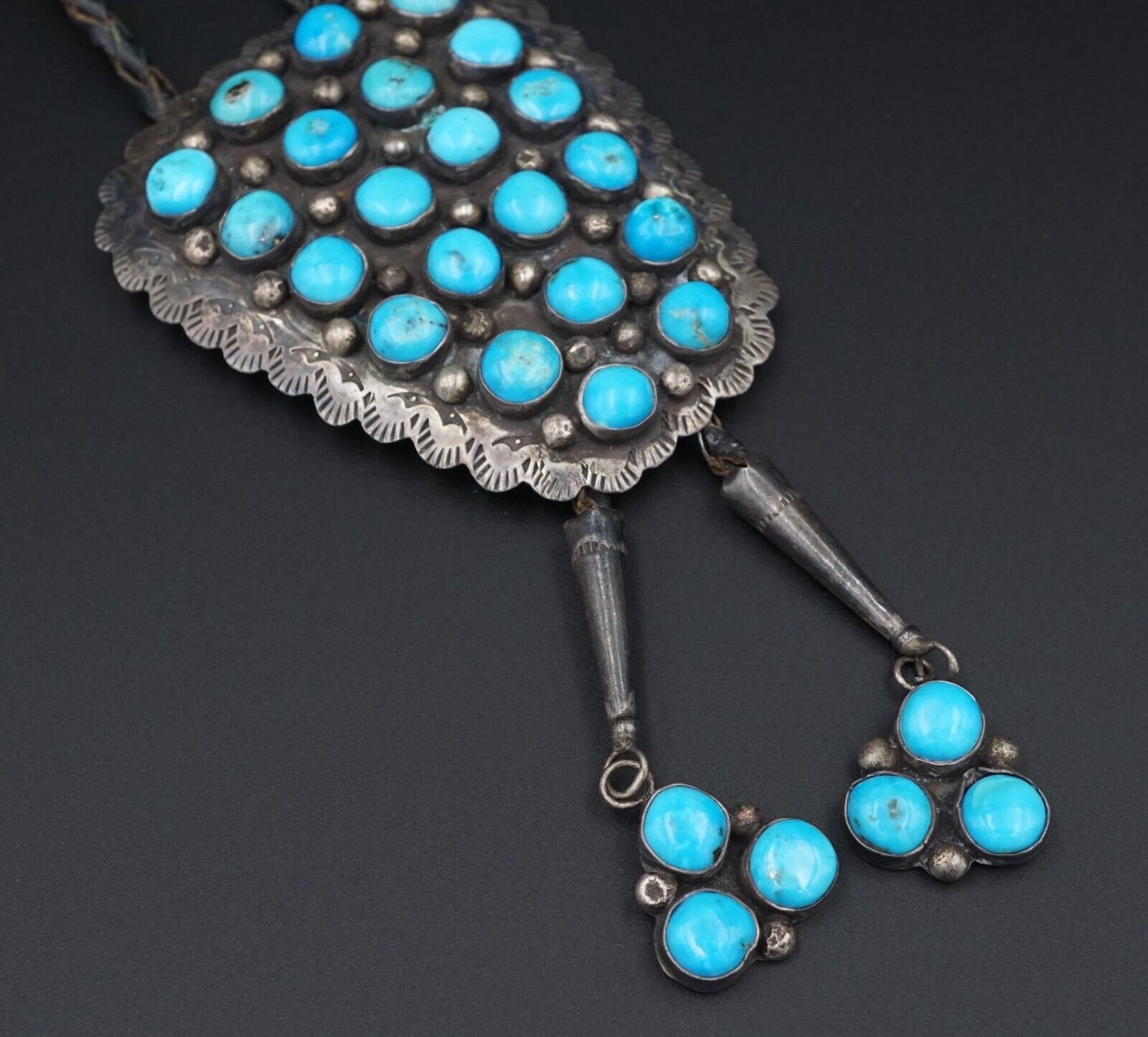 Vintage Navajo Sterling Silver Blue Turquoise Bolo Tie 38" M1817