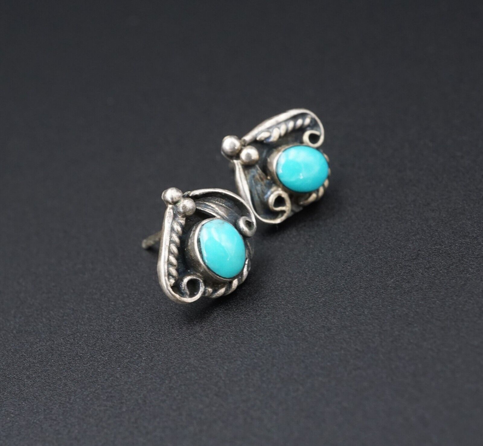 Vtg Navajo Turquoise Earrings Jim Calladitto Sterling Silver Post Stud ES2388
